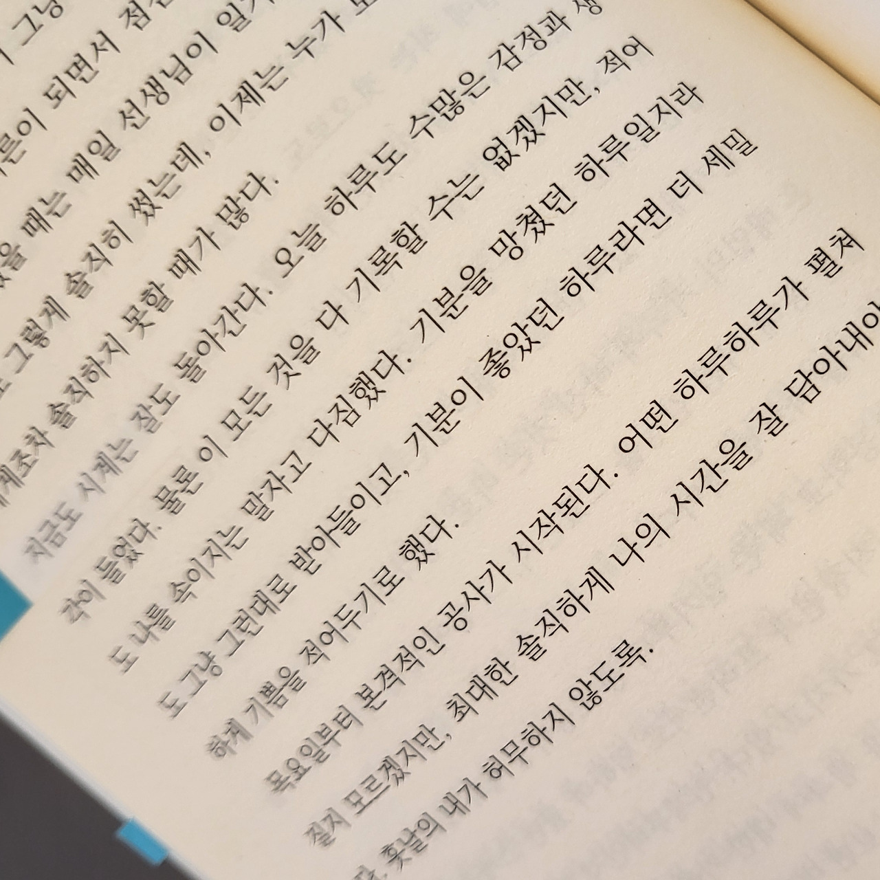 중간중간 쓰러지는 자신을 붙잡아 세우려 힘주어 적은 일기의 흔적들에 많은 공감이 갔다.