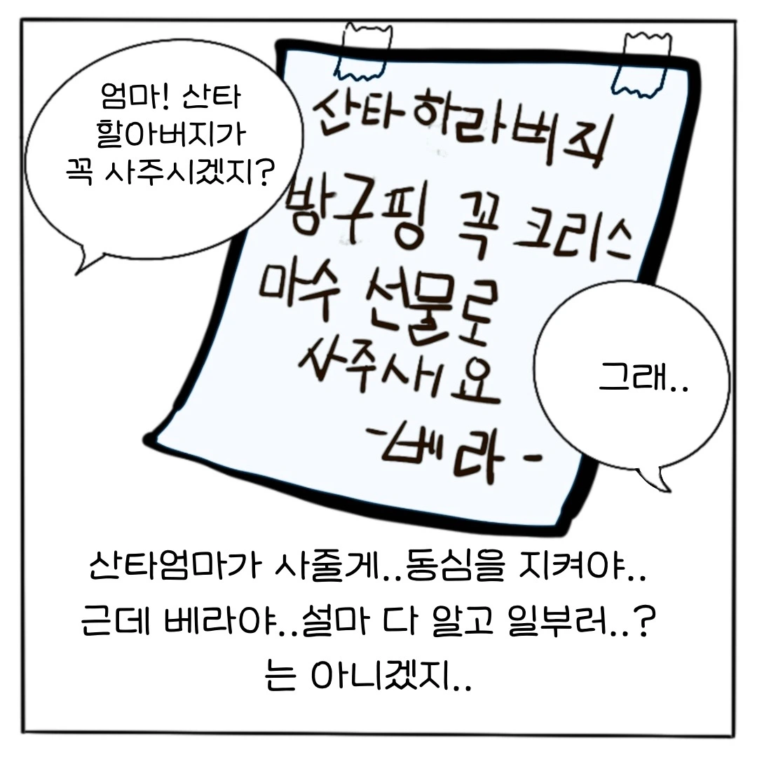 그래. 산타엄마가 사줄게. 너의 동심을 지킬 수 있을 때까지는 지켜줘야지.