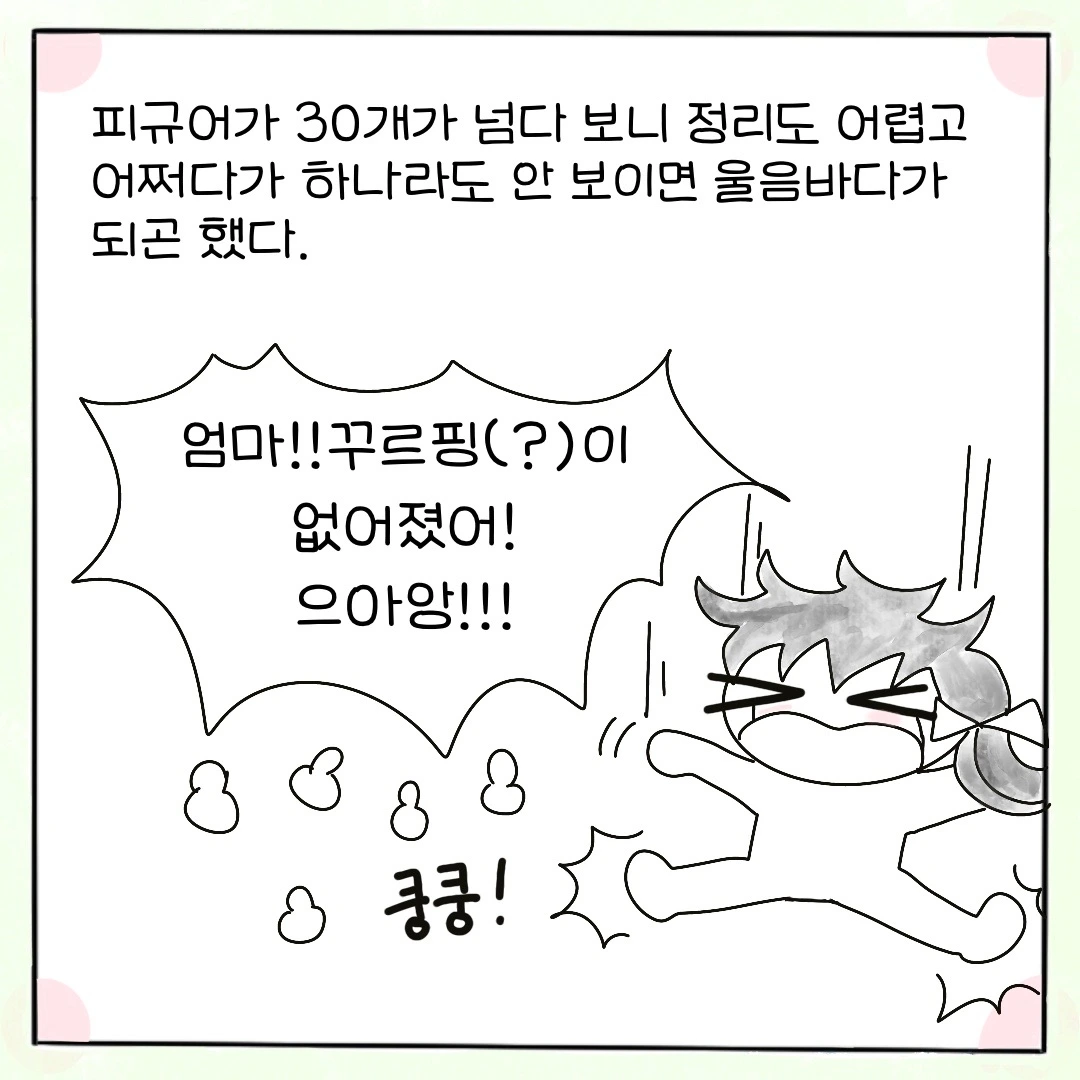 그리고 온갖 핑 시리즈의 피규어들을 모으기 시작했다. 엄마, 아빠, 할머니, 할아버지 찬스 등 온갖 찬스를 이용해서...