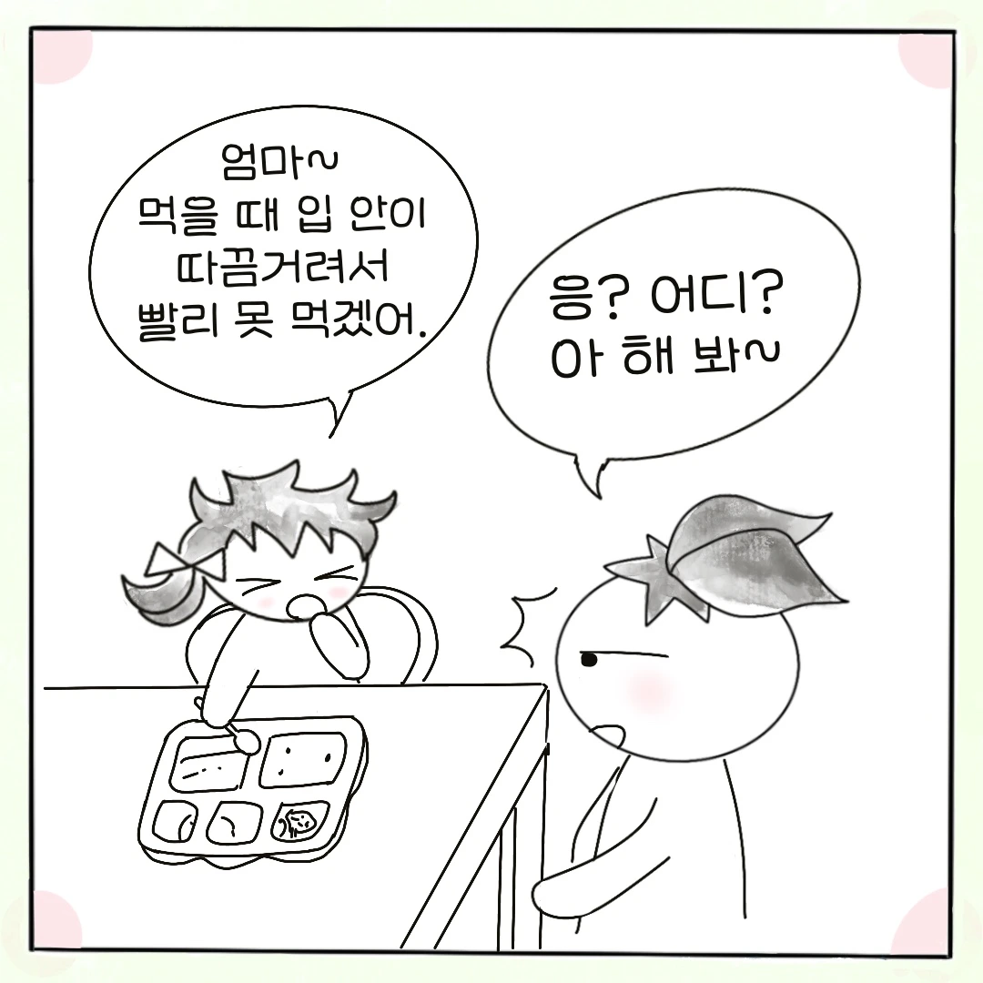 "엄마 먹을 때 입 안이 따끔거려서 빨리 못 먹겠어."
