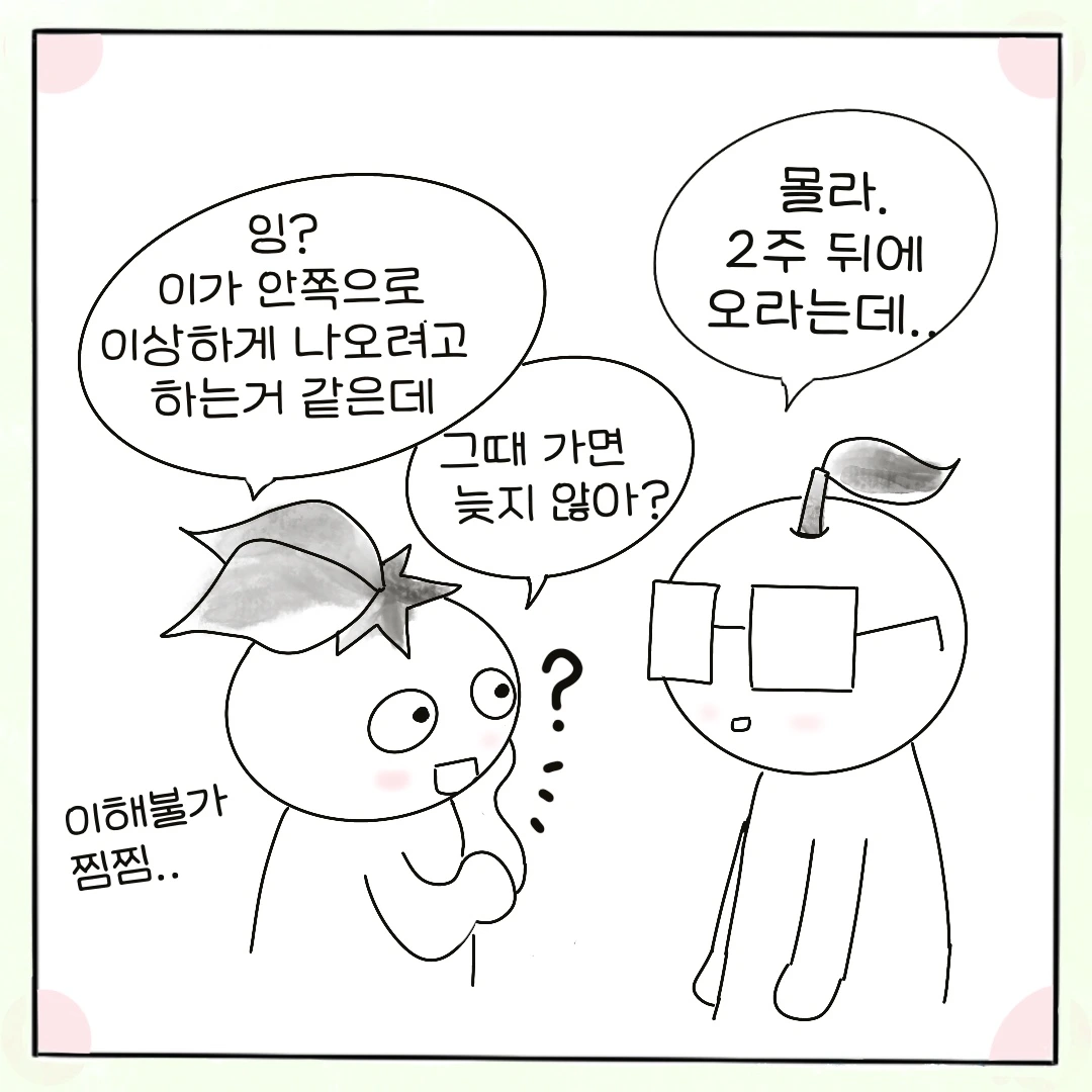 "잉? 이가 지금 안쪽으로 이상하게 나오려고 하는 거 같은데 그때 가면 늦지 않아?"