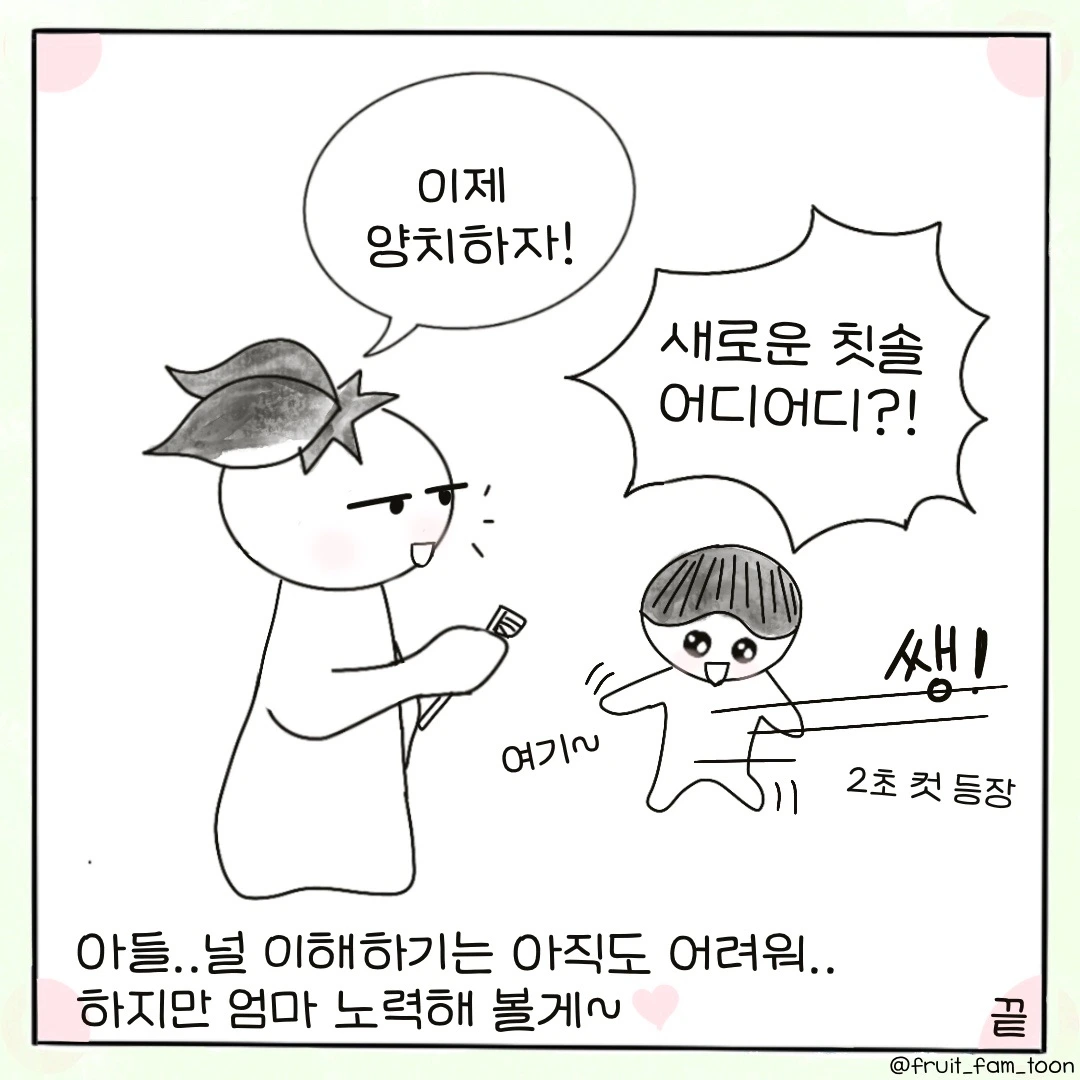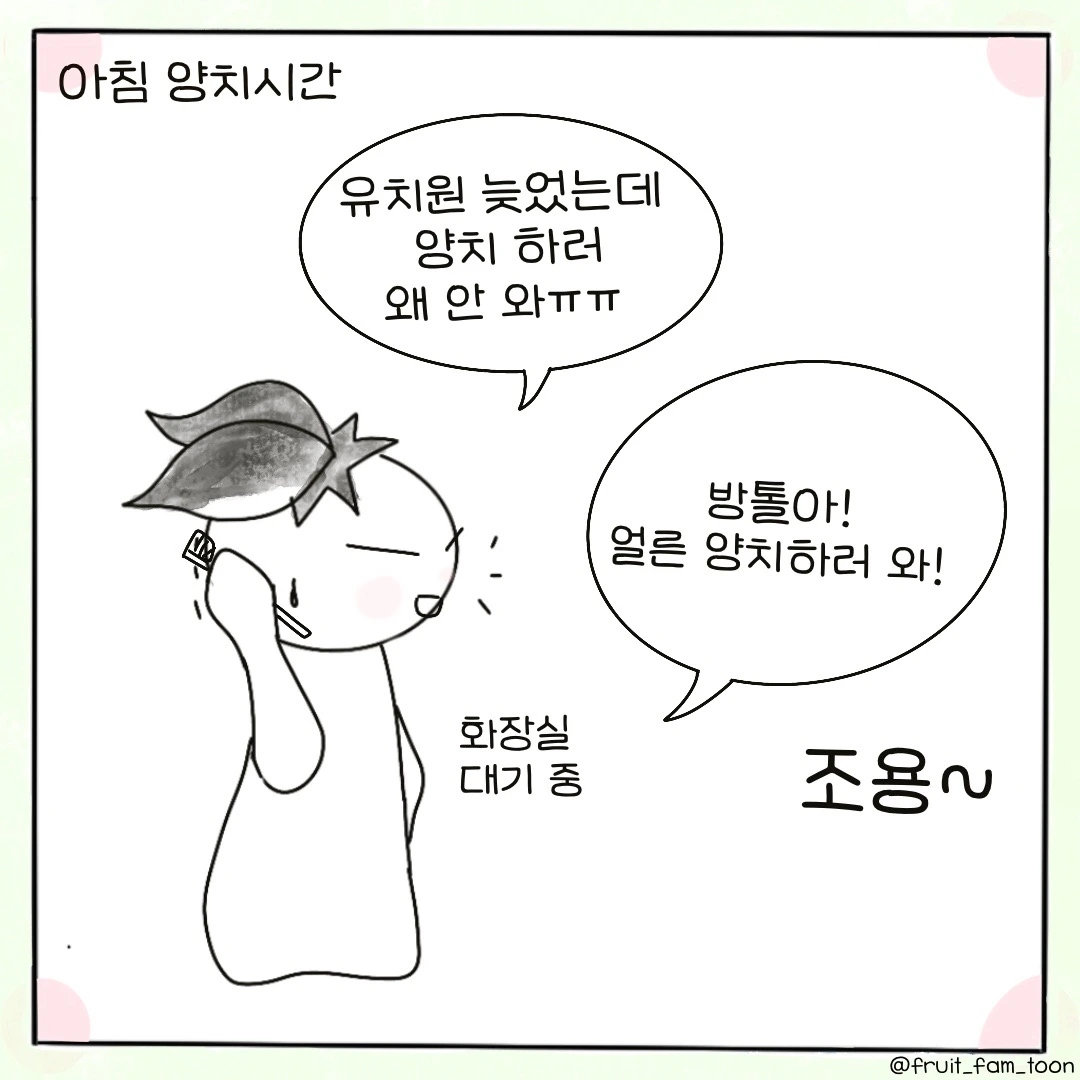 '유치원 늦었는데 양치하러 왜 안 오는 거야.'