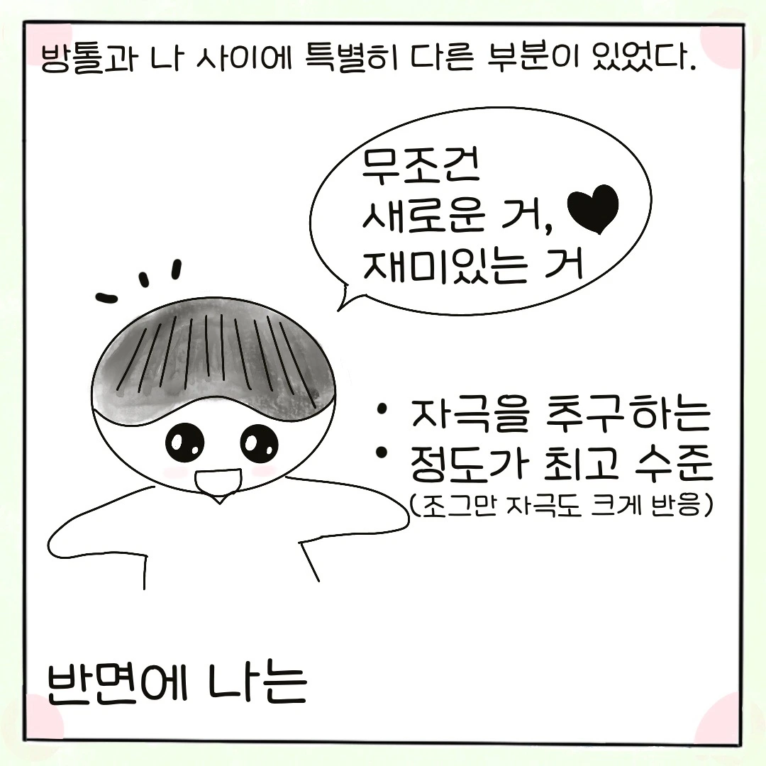 유전자의 힘일까. 방톨과 나의 기질은 대부분은 비슷했다.