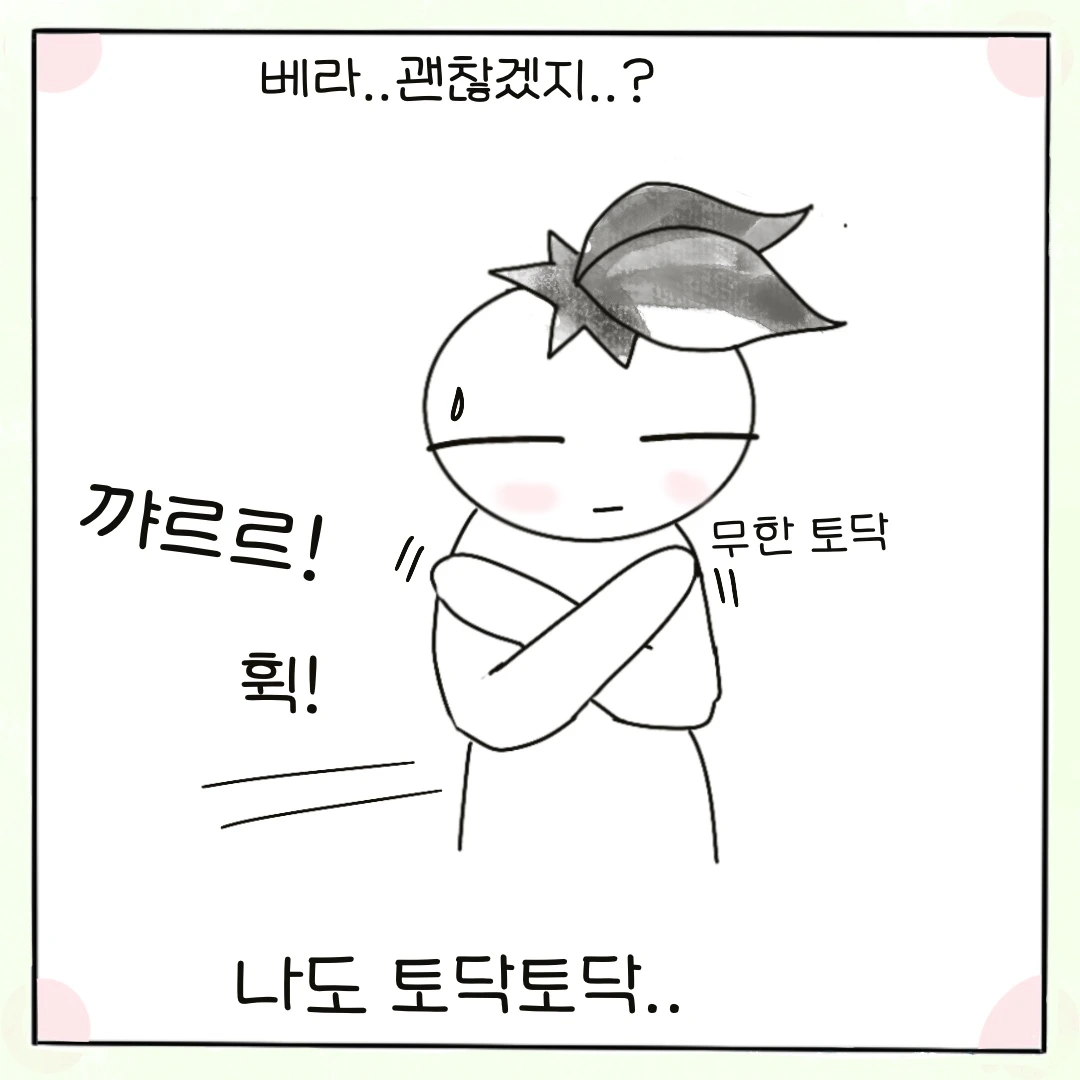 베라가 쌩하니 둘째 방톨에게 달려갔다. 이내 두 아이들의 우당탕탕 꺄르르 소리가 울려퍼졌다.