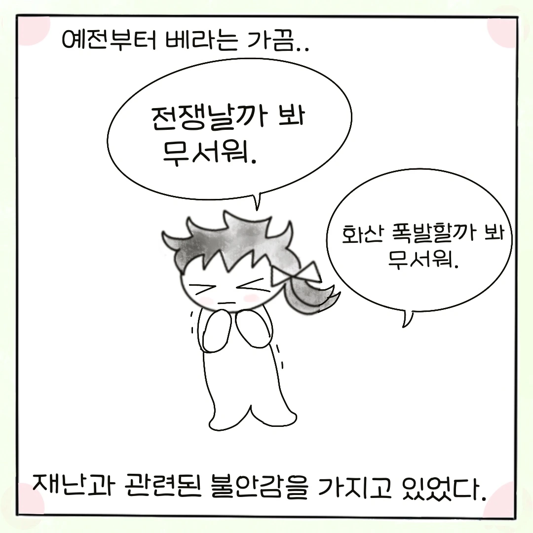베라는 평상시에도 재난에 대한 불안감과 공포를 가지고 있었다.