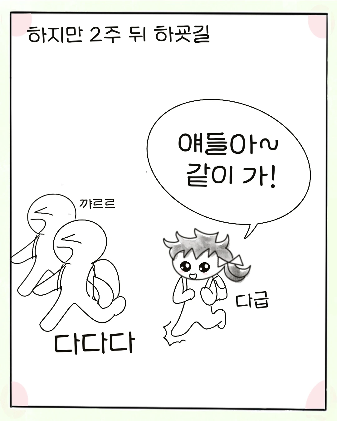 먼저 걸어서 다니던 학교 등하원과 학원차 이용이 어려웠다. 나는 베라의 운전기사가 되어 자차로 라이딩하기 시작했다. 아이의 가방은 항상 내 손에 들려있었고, 방학은 끝났으나 나의 베라 매니저 노릇은 아직 끝나지 않았다.