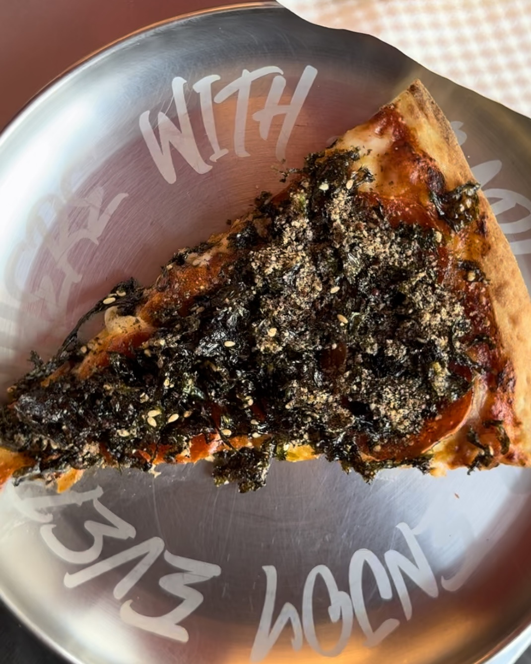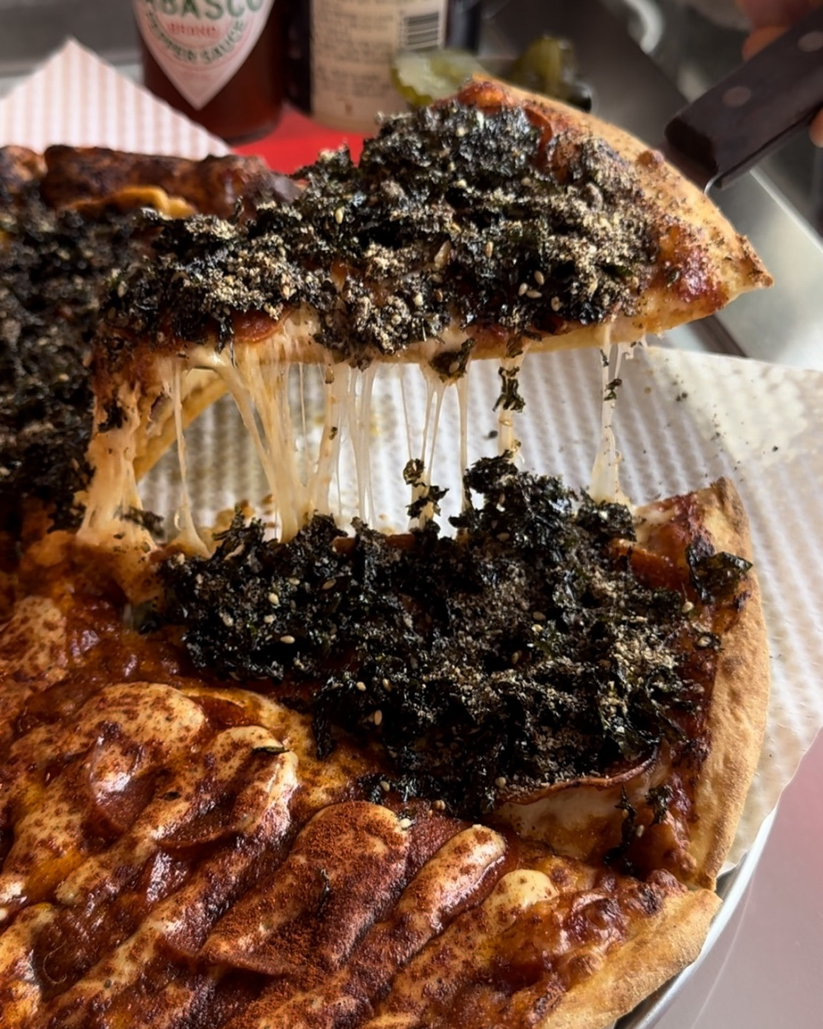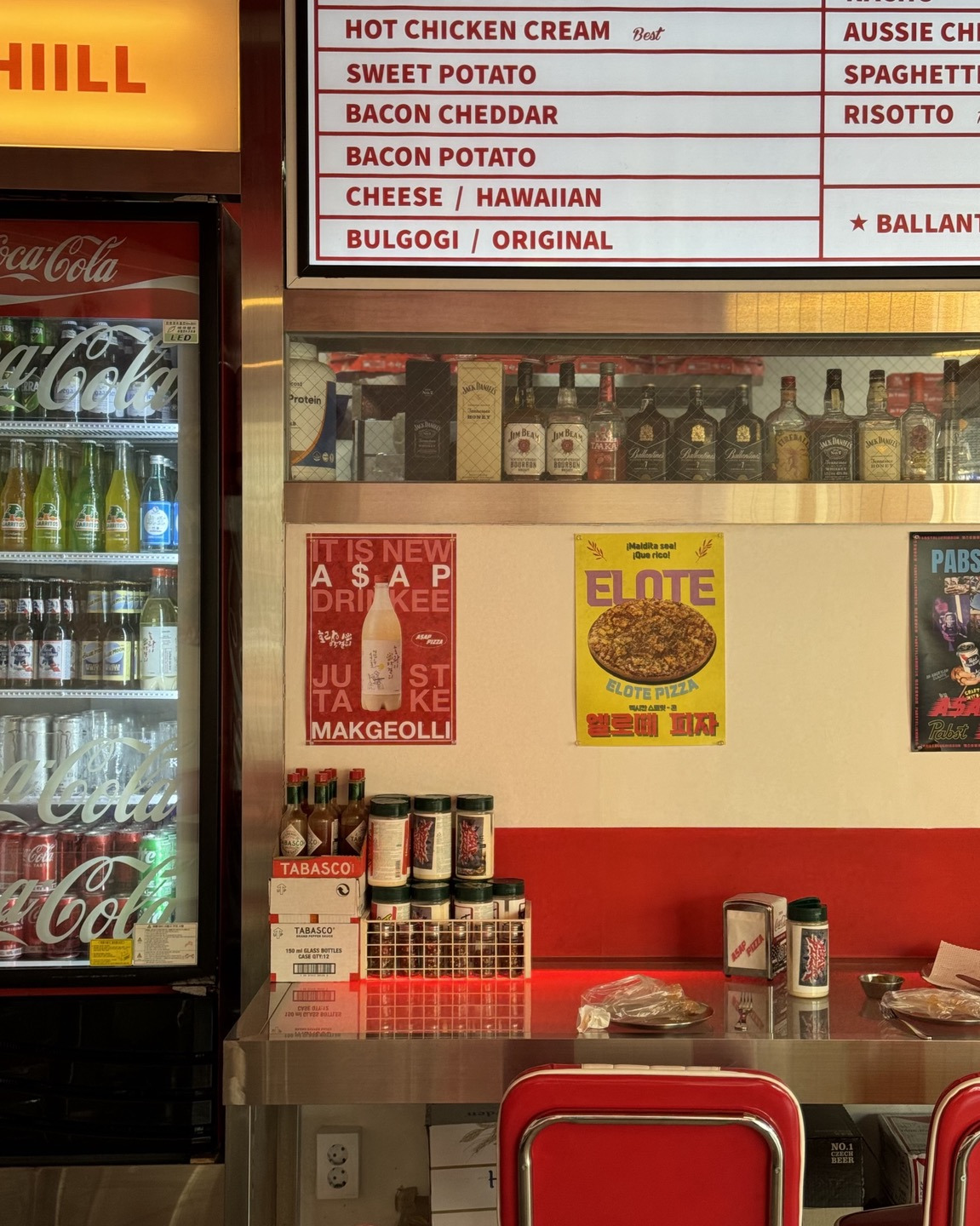 “이색 피자. 저는 처음에 고수, 가지, 오이 같은 ‘호불호 재료’가 올라간 피자를 상상했어요. 그런데 이게 웬걸. ‘에이셉피자 성수점’에는 고소한 들기름, 들깻가루, 김자반이 올라간 ‘들깨 피자’가 존재하는 거 있죠. 피자를 한 조각 집어들 때마다 우수수 떨어지는 김자반. 멀리서 보면 흠칫하게 되는 새까만 비주얼. 보자마자 딱 ‘한국인은 모르지만 미국인은 열광하는 고추장버터’가 생각났습니다. 불호가 적은 재료의 조합으로만 탄생한 생소함! 이 같은 생소함에서 흘러나온 ‘힙(Hip)스러움’이 매력이랄까요. 덧붙여 냉장고 한켠을 차지하는 막걸리는 ‘아는 사람만 아는’ 피막(피자+막걸리) 조합의 필수템입니다. 남들이 시도하지 않는 것에 오히려 도전정신이 생기는 점을 공략한 것이지요. 한식과 양식의 절묘하고도 힙한 조화. 왜 내국인과 외국인 모두 매료됐는지 알겠네요.”