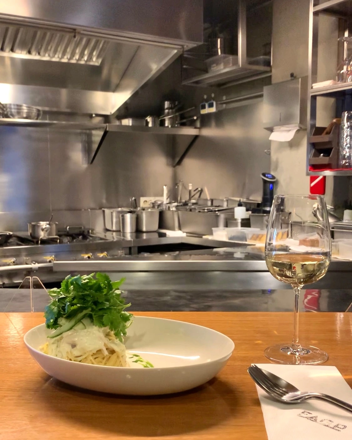 “고수 파스타라고 들어보셨나요? 2019년부터 지속적으로 미쉐린 빕구르망에 선정된 파스타 전문점, 팩피에서는 고수를 메인으로 한 특별한 파스타를 만나볼 수 있어요. 고수, 오이, 닭가슴살, 코코넛밀크크림, 고수퓨레와 고수 오일이 어우러진 메뉴입니다. 호불호가 가득한 재료에 초록빛 비주얼이 마치 먹어도 될까… 하는 고민을 하게 만들죠. 미쉐린이 인정한 고수 파스타가 궁금하신 분들은 예약하시는 걸 추천합니다. 팩피는 작은 규모의 가게인 만큼, 메뉴 가지 수를 적절히 가져가면서 퀄리티에 집중했어요. 글라스 와인과 다양한 가격대의 보틀 와인 리스트도 가지고 있죠. 스타터부터 디저트, 와인 안주까지 판매하고 있는 점에서 '팩피'라는 공간 안에서 오래 머물 수 있도록 전략적으로 메뉴를 구성한 것 같았습니다. 차분한 분위기 속 퀄리티 있는 음식과 술이 있는 공간이라니, 이제 막 와인에 관심이 생긴 분들에게도 딱이겠어요.”