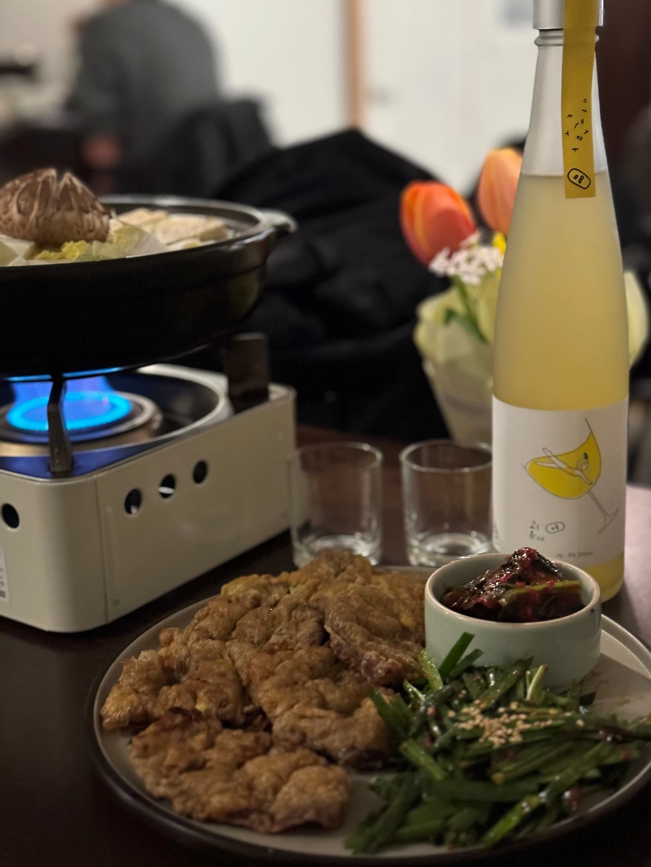 2) 지친 하루 끝에 정갈한 찌개와 전통주 반상, 온 미