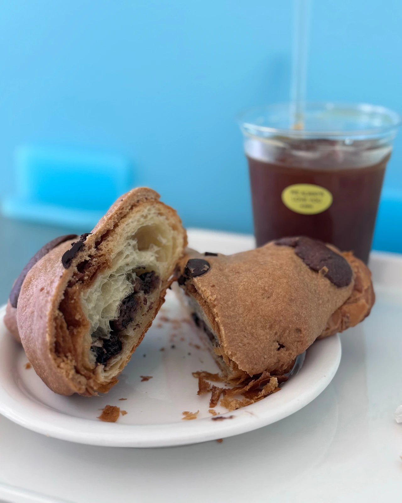 “크루키는 달아요. 크루아상에 초콜릿 칩이 가득 박힌 쿠키가 올라갔으니, 당연히 달콤할 수밖에요. 그러니 더더욱 에스프레소가 크루키와의 찰떡궁합 커피로 자리해야 한다고 생각해요. <폴린 커피바>는 성수에서 이름을 날린 에스프레소바인만큼, 넓은 바리에이션의 에스프레소 메뉴를 선보이고 있어요. 그렇기에 단일 메뉴인 크루키를 픽(Pick)한 뒤, 에스프레소를 고르는 재미가 쏠쏠하답니다. 그리고 개인적으로 크루키의 맛을 결정하는 요소는 쿠키보다는 크루아상의 바삭함에 있다고 보는데, 여기 크루키는 겉은 바삭하고 속은 꾸덕꾸덕해서, 먹는 내내 뺑오쇼콜라(Pain au chocolat)를 연상시켰어요. 주문 즉시 데워서 내주시는 크루키를 열심히 잘라서 먹다가, 계속되는 달콤함으로 살짝 물릴 때쯤, 적당히 쌉싸름한 콘파냐 한 모금을 하면 크루키 몇 개는 가뿐히 해치울 수 있을 듯한 기분이 들죠. 최근 유행하는 ‘저속노화’ 음식과는 거리가 먼 크루키이지만, 이 정도 맛이라면 초고속 노화도 한 번쯤 눈감아 줄 만하네요!”