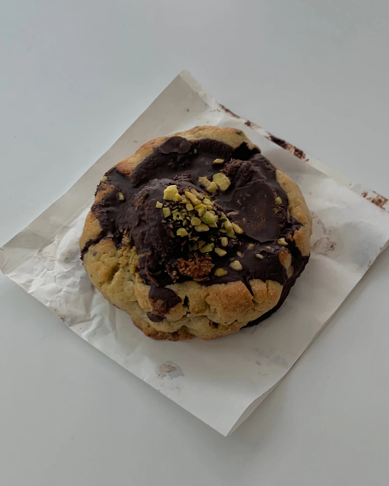 "수제 쿠키와 휘낭시에로 사랑받고 있는 <니토>에서 두바이 초콜릿 쿠키를 판매한다고 해서 다녀왔어요. 작고 아담한 가게는 포장과 배달을 위주로 운영되고 있었는데요, 그럼에도 불구하고 귀엽고 따뜻한 내부가 눈에 띄었어요. 다양한 쿠키 라인업들 사이에 자리 잡은 ‘두바이 초콜릿 쿠키’는 재료 수급 문제로 인당 3개로 수량제한이 있었어요. 이곳의 두바이 초콜릿은 조금 더 특별한데요, 바로 피스타치오 페이스트를 직접 만들어 사용한다는 점이죠! 버터향 낭낭한 초콜릿 쿠키+바삭한 카다이프면+수제 피스타치오 페이스트+눅진한 초콜릿…. 맛과 식감의 레이어가 너무 풍성해서 깜짝 놀랐어요! 페이스트를 직접 만들어 써서 그런지 엄청나게 고소하고, 지나치게 달지 않아서 더 맛있게 느껴지더라구요. 한 가지 꿀팁을 드리자면, 상온에서는 촉촉하게 먹을 수 있고 좀 더 차갑게 먹으면 보다 꾸덕하게 즐길 수 있어요. 고소하고 담백한 버전의 두바이 초콜릿 쿠키를 원하는 분들에게 강력추천 드립니다!“