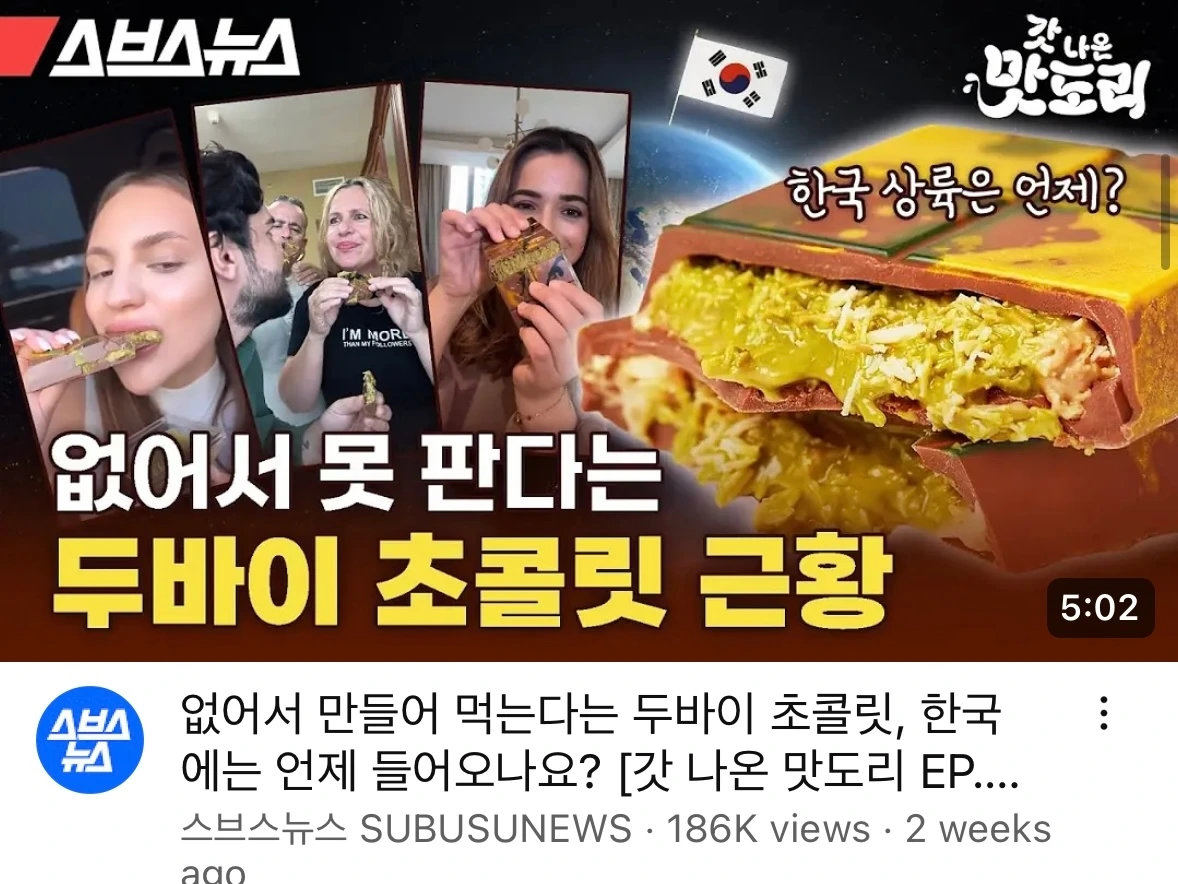 "두바이 현지에서도 난리난 초콜릿이라고요?!"