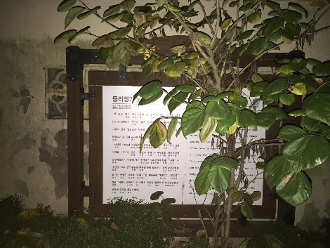 선생의 실망감이 역력하게 느껴진다. ‘만자동경’은 1979년에 발표된 작품이니, 만약 김동리 선생이 지금의 성건동을 봤으면 할말을 잃으셨을 것 같다. 옛 성건동은 김동리 선생의 대표 단편 ‘무녀도’와 장편 <을화>의 무대가 된 ‘무당촌’이었다. 집집마다 대나무가 걸려 있고, 그 나무 끝에는 펄럭이는 깃발이 달려 있었다고 한다. 그 흔적은 강변 길 끝자락에 아직 남아 있는 커다란 당산나무에서 찾아볼 수 있었다. 김동리 선생은 이 나무 주변에서 뛰어놀았다고 전해진다. 나는 나무를 한 바퀴 휘돌아보며 나무의 커다란 몸통을 쓰다듬어 보았다.