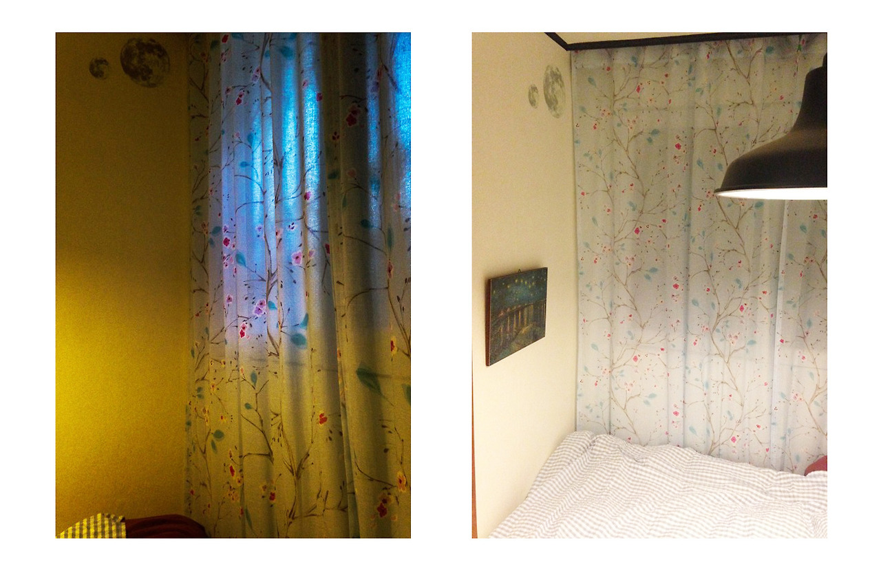 STEP 4 - 새벽빛이 은은하게 비쳐드는 커튼을 달고 나니 제법 운치 있는 침실이 되었다.