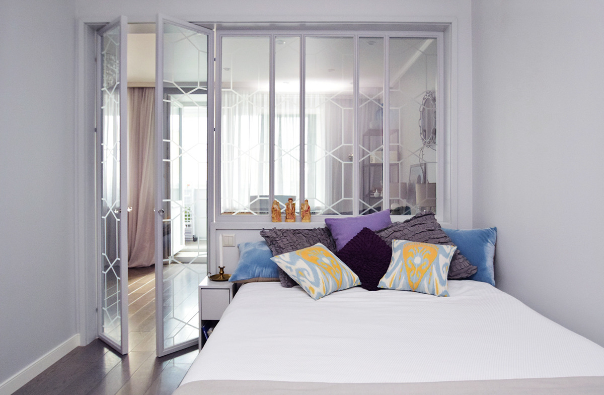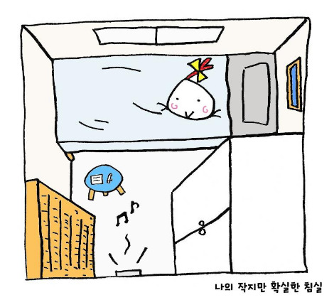 침실의 주 기능은 역시 ‘숙면’이다. 지나치게 군더더기가 많으면 숙면에 방해가 된다. 빛을 잘 차단하는 것도 중요하다. 잠이라는 기본 기능을 대전제로 둔 채 야금야금 옛 다락방과 4평 자취방의 기억들을 이식해나갔다. 내가 침실에 담고 싶었던 것을 키워드로 정리하면 다음과 같았다. 음악, 영화, 라디오, 독서, 글쓰기, 드레스룸, 커피, 야식 등등. 그야말로 올인원. 바로 침실은 나의 작지만 확실한 행복들이 모두 깃든 소확행룸이었다.