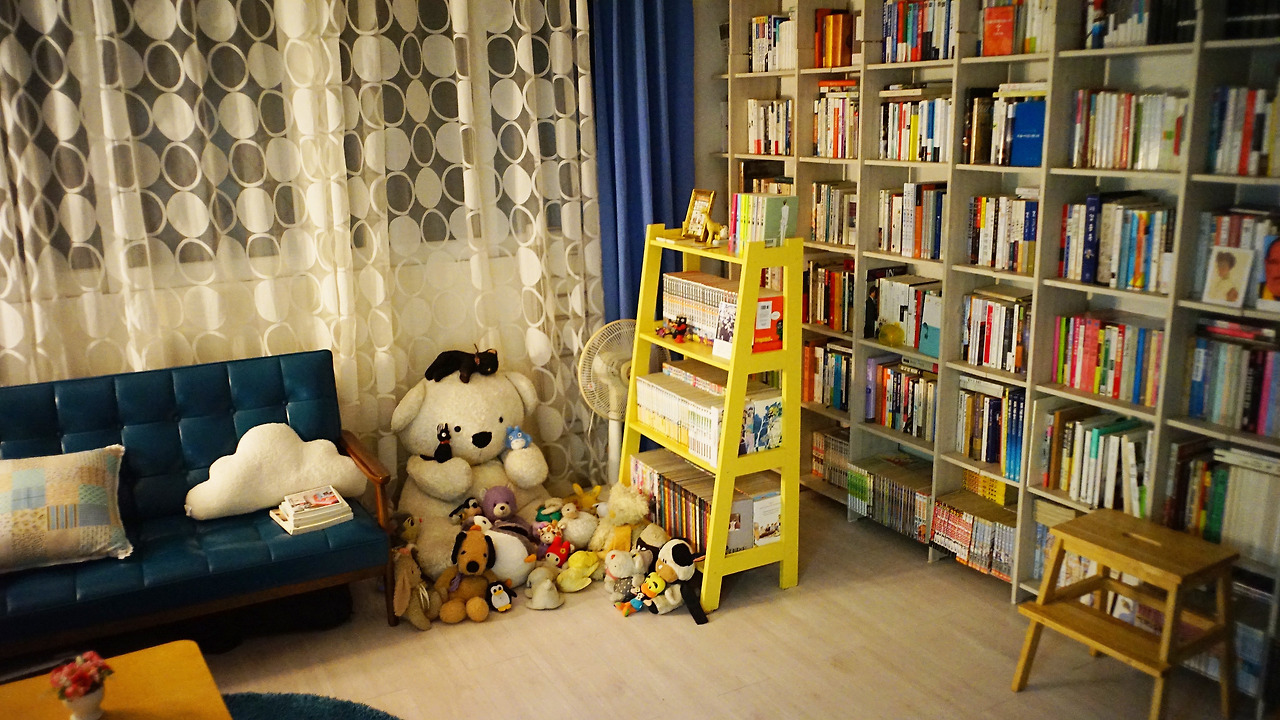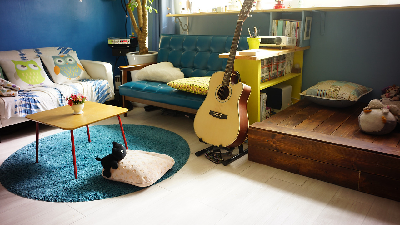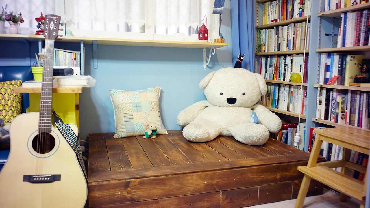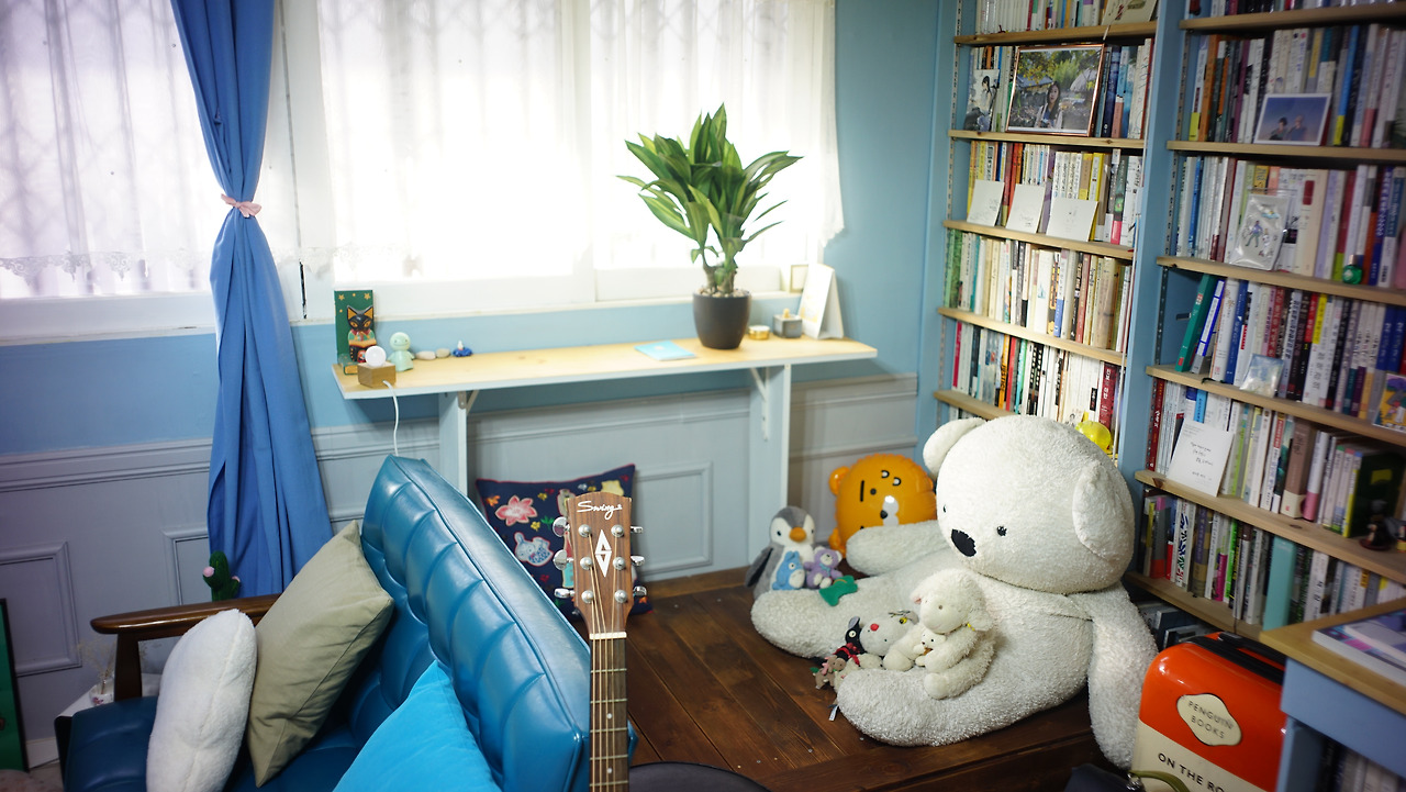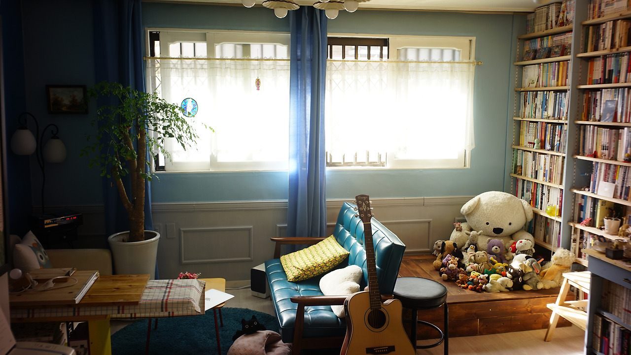 응접실 한 켠에 우물마루가 놓이면서 독특한 전통미가 더해진 것은 물론, 마루 아래 비밀의 공간에 계절이 지나간 옷들을 몽땅 수납해놓을 수 있어 대형 옷장이 필요 없어졌다. 반려인형들도 자기네 방이 생긴 것처럼 즐거워 보인다.