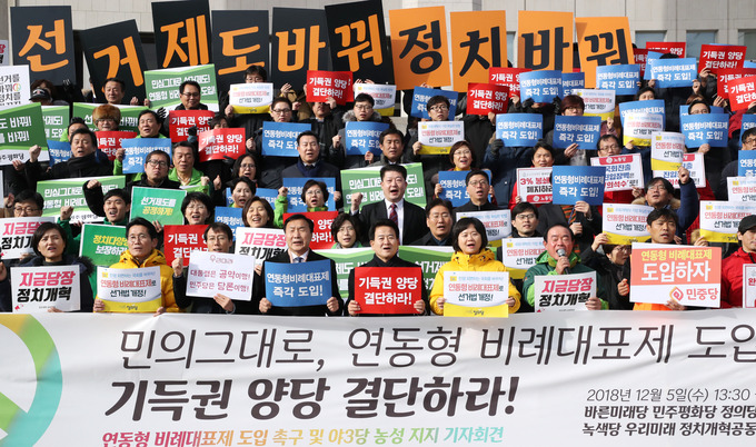 그러나 한국 정치계는 오랜 세월 힘을 가진 정당만이 계속 힘을 가져야 한다고 다른 생각을 가진 유권자에게 강요해왔다. 이 낡은 판을 갈아엎어보려고 '준연동형비례대표제'가 도입됐다. 아직 큰 힘을 갖추지 못한 정당이라도 그 생각에 동의하는 소수의 유권자가 있다면, 그 지지만큼 최소한의 의석을 보장해주는 제도다. 정의당은 꾸준히 5% 이상의 지지를 받아왔다. 온전한 연동형이라면 국회의석 중 15석에 정의당이 자리해야만 5% 시민의 정치적 의사가 국회에 온전히 반영되는 것이다. 작은 진보정당들은 애처롭게도 이 제도를 오랜 세월 염원해왔다. 단 1석이라도 작은 목소리를 국회에 반영하기 위해서 말이다.