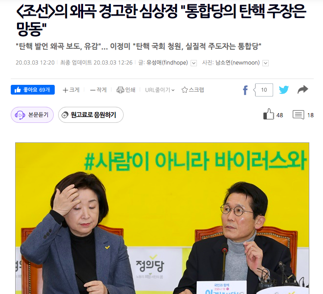 신이 난 보도매체들은 유례 없이 정의당이 민주당계 지지자들의 비난을 받고 있다고 기사를 쓰지만, 사실은 그렇지 않다. 정의당은 창당 이래 언제나 거대 정당들의 비난을 한몸에 받아왔다. 보수당을 공격하면 100석 이상의 거대 정당이 6석의 정당을 상대로 총공세를 펴왔고, 민주당과 개혁경쟁을 하자고 하면 지역구에 알박기를 한다느니, 비례의석 앵벌이를 한다느니 하는 조롱을 당했다.