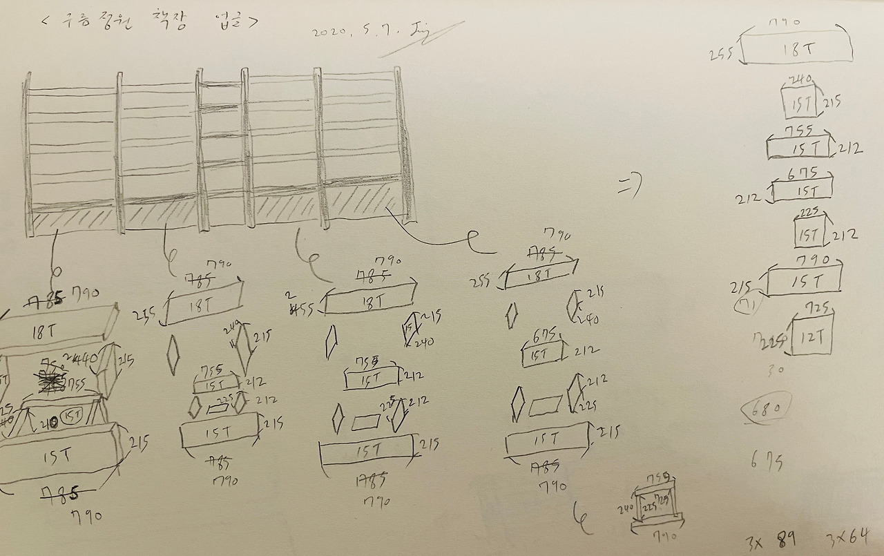 7. 설계도에 맞게 주문한 목재를 조립해 서랍장을 만든다.