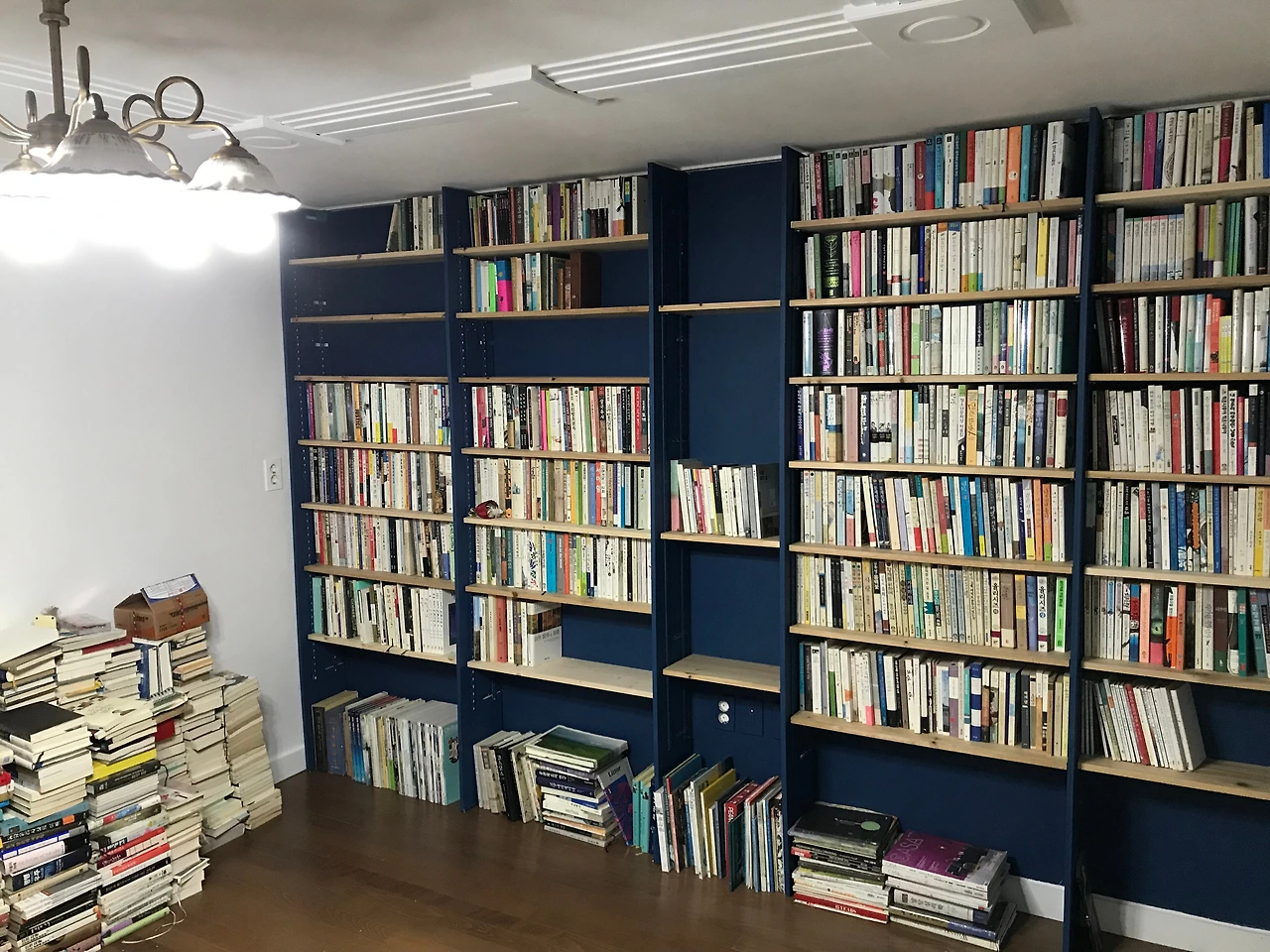 책을 수납하기 위해 우리에게 필요한 것은 단지 벽으로부터 한 뼘의 공간이다. 이 한 뼘의 깊이에 바닥부터 천장까지의 높이를 최대한 활용하면 수납력이 극대화된 책장을 만들 수 있다. 3평 자취방에도 1,000권 책장을 거뜬히 만들 수 있을 정도다. 수제 책장을 만드는 일은 9천 원짜리 건담 프라모델을 만드는 일이나, 눈사람을 2주 넘게 보존하는 일보다 훨씬 쉽다. 대단한 비용이 들지도 않는다. 나는 약 10년 전에 직접 만든 원목 책장을 여전히 잘 활용하고 있으니, 이만한 가성비를 지닌 가구도 없을 것이다.