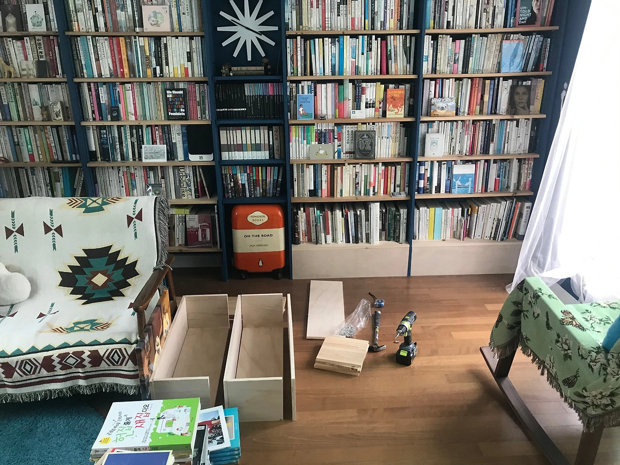 아래의 책장 설치 과정 대로만 따라 하면 누구나 자기만의 수제 원목 책장을 가질 수 있습니다 : )