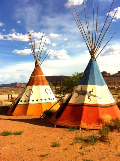 티피 | 들소 가죽으로 만든 삼각형의 이동식 천막. 우리가 지금 쓰고 있는 텐트의 원형이 이 티피로부터 나온 것이다. 이 티피를 집으로 쓴 것은 미국 서부 대평원 지역의 라코타 부족 등이 대표적이다. 티피가 아메리카원주민 주거문화의 상징이 된 것은, 역시 앞에 얘기했듯이 대평원 지역의 부족이 가장 오래 역사에 남아 있었던 탓이 크다. 티피 외의 주거형태 중 유명한 것으로는 이누이트 족의 이글루와 푸에블로 원주민의 유적인 푸에블로보니토(아파트 형식의 다가구 주택.) 등이 있다. <북아메리카 원주민>, <미국사에 던지는 질문> 이 두 책에 보다 일목요연한 설명이 있다.