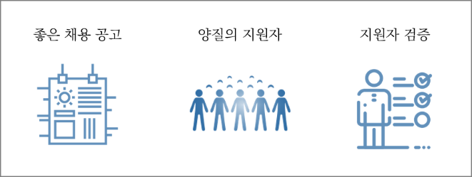 사람을 원하지 않는 회사는 한 군데도 없습니다. 다섯 가지를 검증하는 것도 중요하지만, 검증 이전에 양질의 지원자가 있어야 합니다. 지원자의 모집을 위해 필요한 것은 좋은 채용 공고와 고용 브랜드입니다.