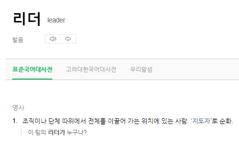 리더의 말을 이야기하기 전에 리더를 검색하면 다음과 같은 의미가 나온다.