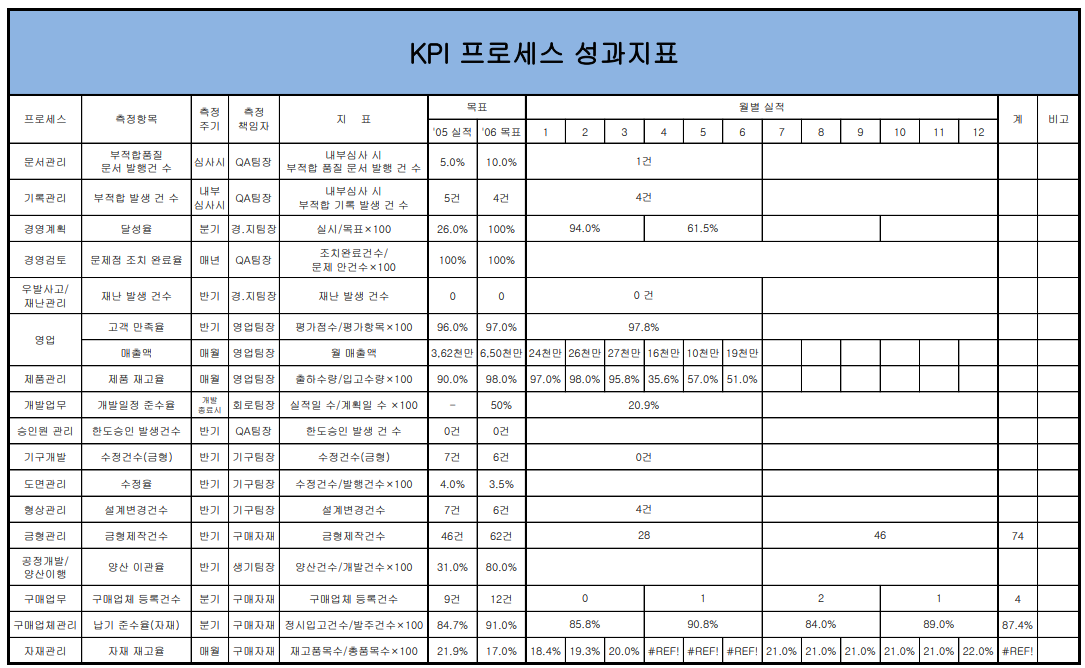 구글에서 KPI 양식으로 검색해서 나오는 이미지 중 하나를 가져왔습니다.