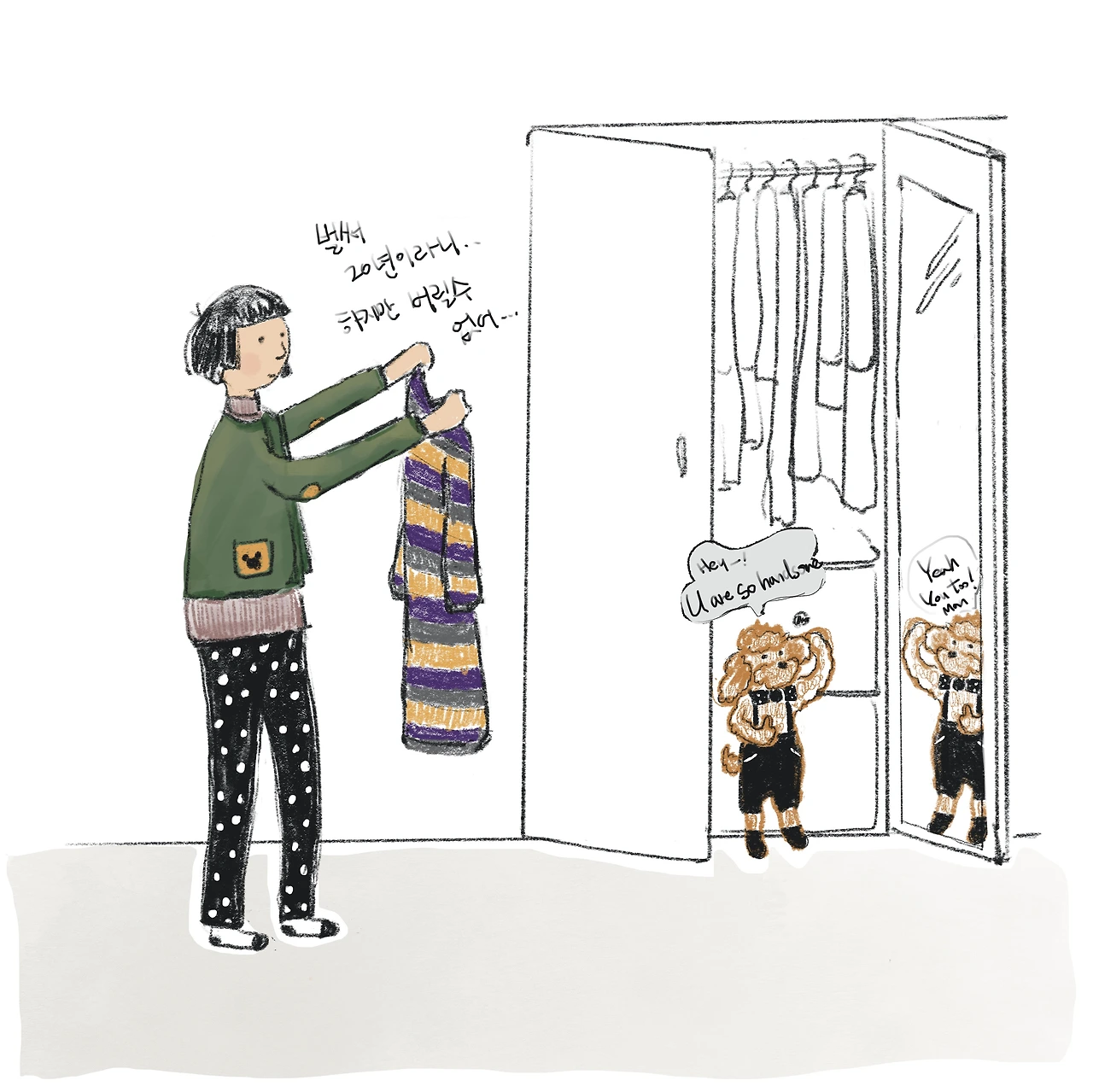 학교 때문에 집을 떠나고 나서 이사가 잦던 내가 지금까지 버리지 못하고 있던 애착(?) 옷이라고 해야 할까. 회색, 보라색, 겨자색이 들어간 줄무늬의 긴 스웨터이다.