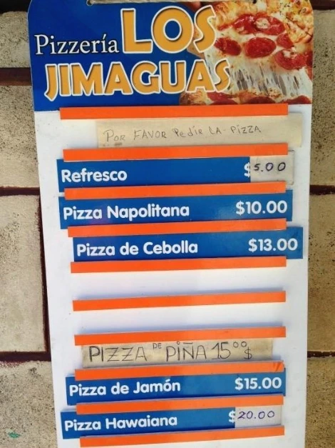 잉글라테라 호텔(Hotel Inglaterra) 뒤쪽 편에는 쿠바 현지인들이 많이 찾는 오래된 상점가가 있다. 그중 Pizzeria LOS JIMAGUAS라는 작은 간판을 건 가게는 손바닥만 한 미니 피자를 파는 전형적인 동네 피자집이다. 바로 옆집도 피자를 팔고 있음에도 이 피자집만 늘 사람이 붐빈다. 4년 전에는 10~20MN(환산하면 400~800원) 정도였던 가격이 12~22MN(500~900원) 정도로 아주 조금 올랐더라.