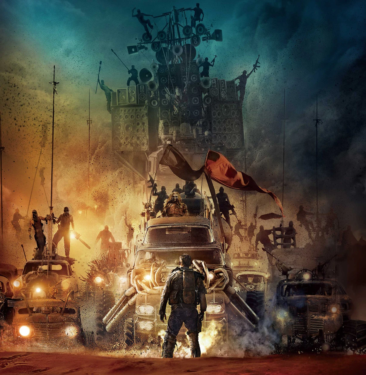 'V8'을 외치며, 손가락을 깎지끼고 절하는 모습은 굉장히 우스꽝스러우면서도 기발했다. 어찌 보면 매드맥스의 배경에는 차가 전부인 세상이다. 이동하기 위해서는 차 밖에 없는데, 차를 만들 수가 없는 세상이다. 그래서, 기존 차들을 분해, 조립해서 새롭게 차를 만들어 낸다. 정말 귀한 자산인 셈이다. 그래서 그 자산을 운전하는 운전대는 너무 소중한 나머지, 따로 보관한다는 컨셉인 것 같다. 운전대를 잔뜩 쌓아놓은 곳에 깎지끼고 숭배하듯 인사하는 설정이라니.. 설정이 재미있으면서도 뭔가 기발했다.