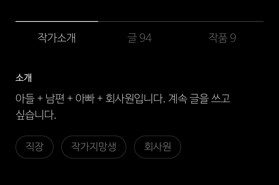 "아들 + 남편 + 아빠 + 회사원입니다. 계속 글을 쓰고 싶습니다."