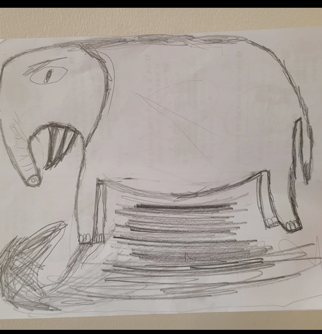 그래서, 조금 엎드려 잤는데, 그래도 시간이 남아서 이처럼 멋지게 (?) 코끼리 작품을 그렸다고 한다.