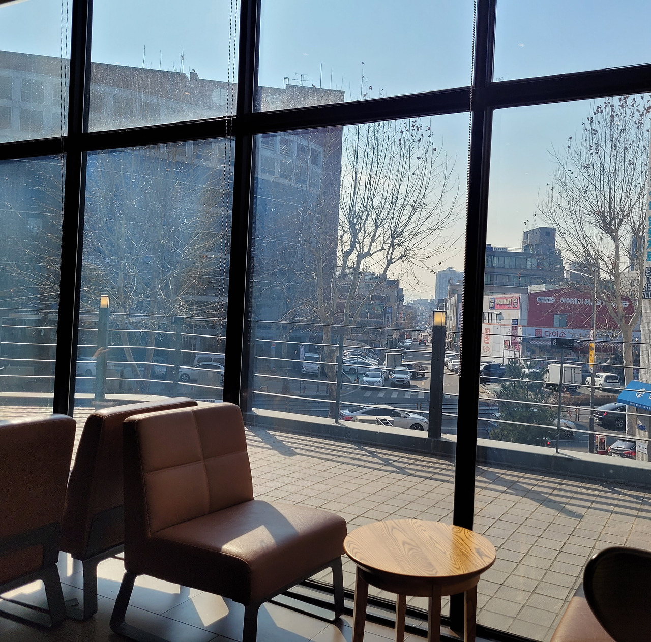 통창으로 이루어진 널찍한 공간의 스타벅스에,