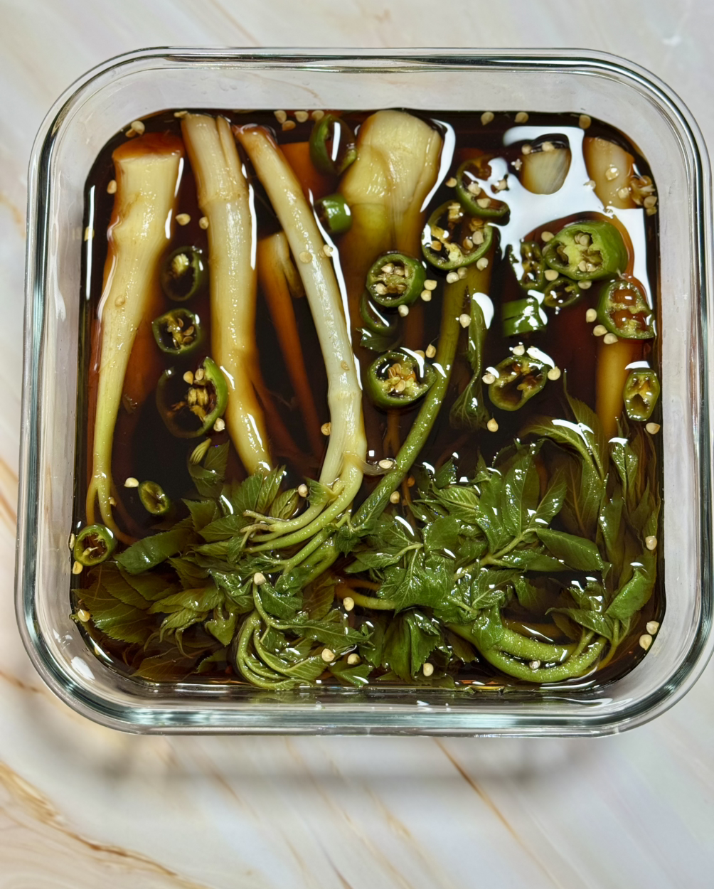 간장물은 한김 식힌 다음에 두릅을 담아둔 통에 부어주세요. 용량 많이 하실 땐 유리그릇 열탕 소독 꼭 해주세요. 저는 간장물 붓기전에 청양고추 두개 썰어서 넣었습니다. 청양고추는 취향에 따라서 해주시면 될 것 같아요.하루 정도 실온 보관 후 냉장 보관해서 드시면 됩니다.