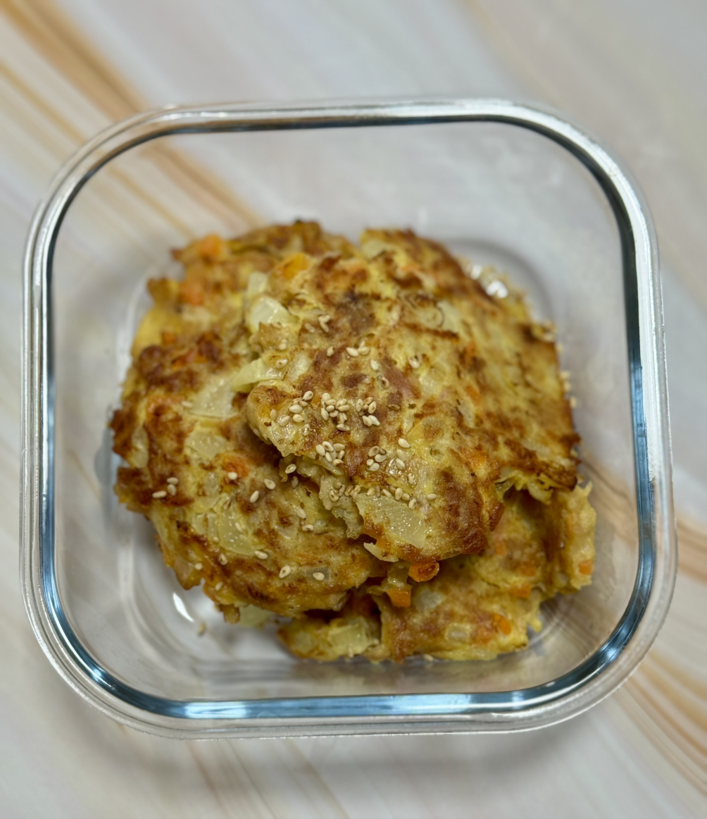 프라이팬에 기름 넉넉히 둘러주고 한수저씩 올려두고 부쳐주세요. 중약불로 한쪽면이 충분이 익었다 싶었을 때 뒤집어 줘야지 안그러면 부서지더라구요.ㅠ