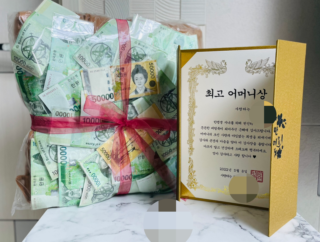 내심 용돈 박스를 준비하면서 봉투에서 돈 하나하나 꺼내야 하니 번잡스럽다고 오히려 싫어하진 않을까 걱정했었다. 엄마는 뭔가 이벤트는 좋아하지 않을 것 같았다. 조금은 냉소적이고 무뚝뚝하다고만 생각했는데 아니었다. 엄마도 여자였다. 세상에 이벤트를 싫어하는 여자가 어디 있겠는가.