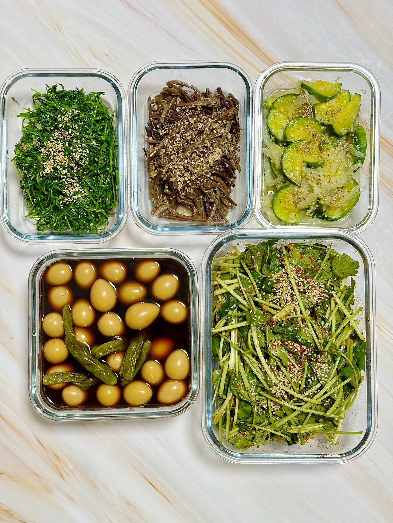 달래간장 해둔 게 있어 나물에 밥 비벼서 먹여볼까 싶어 이번 주는 나물 위주로 만들어봤습니다.
