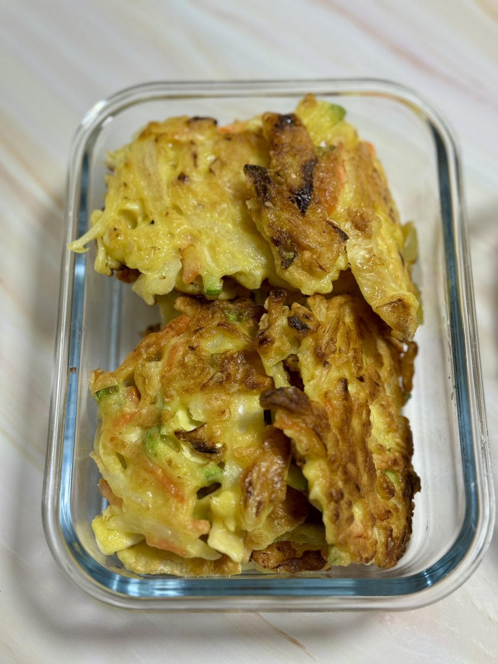 준비물: 양배추 채썰어서 두주먹 정도. 애호박 1/3개, 당근 1/3개, 양파 반개