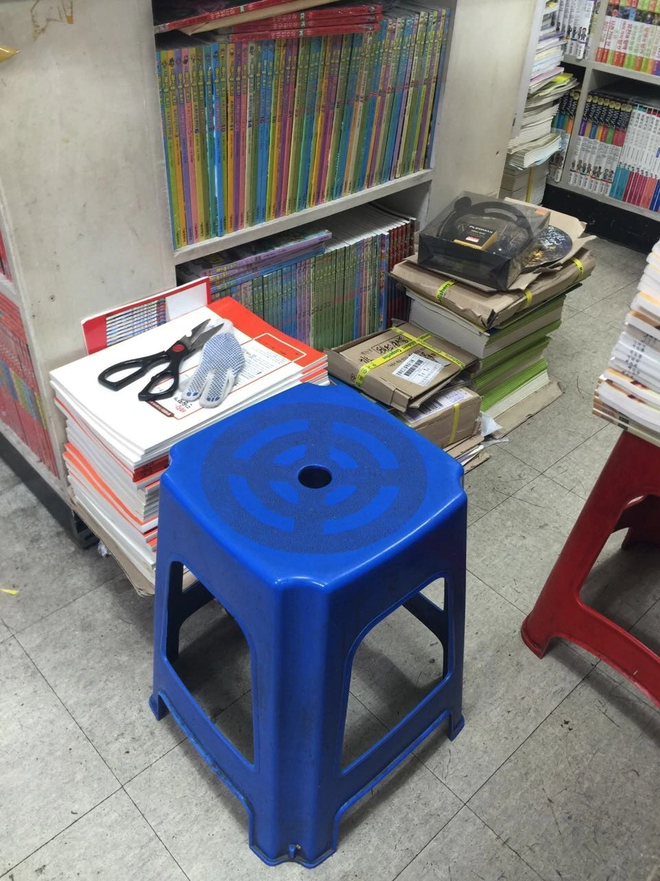 문화문고의 카운터에는 사장님의 손글씨로 쓰인 수많은 출판사 번호가 든 수첩이 있고, 각 학교 방학 숙제를 위한 추천도서 목록이 붙어있다. 그리고 카운터 바닥은 작고 단단한 사장님의 무게만큼 반들반들 닳아있다. 이 자리에 맞춰서 서면 된다고 가르쳐주는 무용실의 발자국 스티커처럼. 누군가의 선택을 받아 이 카운터를 지나간 수없이 많은 책들 위에는 작은 물고기 같은 문화문고의 서인이 찍혀있다. 이 동네에는 아마 그 물고기가 찍힌 책이 집집마다 적어도 한권은 있을 것이다. 우리 집처럼 수족관을 차릴만한 집도 분명 있을 것이고. 서점 뒤편 쪽방에는 급한 끼니를 해결하는 작은 부엌과 오는 이 누구에게든 내어주는 믹스커피가 있다. 서점과 사장님을 사랑하는 이들은 카운터 옆 작고 파란 플라스틱 의자에 앉아 믹스커피를 마시며 한가득 이야기를 나누다 간다. 오래전 총판에서 함께한 동료, 옆 동네 서점주인, 자주 책을 사가는 선생님, 요리책 콜렉터 우리 엄마까지. 가끔은 나도 파란 의자를 차지하고 앉아 글 쓰는 것, 책을 읽고 사는 것. 문화문고가 내게 필요한 이유 등을 늘어놓는다. 이야기가 술술 나오는 의자라 한번 앉으면 시간가는 줄 모르고 내내 라디오처럼 떠들기도 한다.