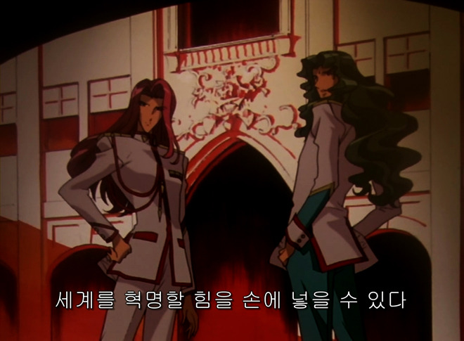 그런데 이쯤에서 다시 생각해봅시다. 혁명의 정의에 대해서요. 우리가 선풍기가 불편하다고 에어컨으로 바꾸거나, 가스레인지를 인덕션으로 바꾸는 정도를 혁명이라 부르지 않습니다. 혁명이란 산업혁명 이전 말을 중심으로 한 인프라가 자동차가 등장한 후 모두 해체되고 파괴되는 것. 이를테면 이제 말을 키우는 목장, 마부, 마차 이런 인프라들이 깡그리 무너지고 고속도로나 물류시스템 같이 새로운 체제가 등장해 구체제를 파괴할 정도의 변화가 있는 것. 이런 것들을 우리는 혁명이라 부릅니다. 그래서 왕권을 무너트린 프랑스혁명, 자유시장의 질서를 해체하고자 하는 공산주의 같은 것들 뒤에 우리는 혁명이란 이름을 붙입니다. 이런 혁명의 특징을 기억하고 우테나를 함께 바라봅시다.