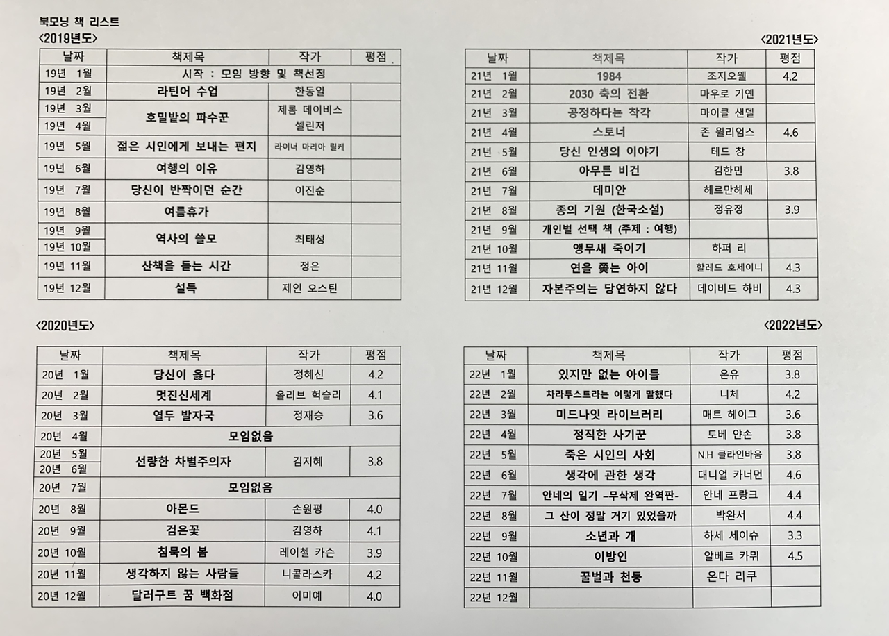 그렇게 2019년 1월 첫 모임을 시작으로 현재 2022년 11월이면 꽉 채운 4년 독서모임을 향해 달려가고 있는 판교"북"모닝을 소개합니다.