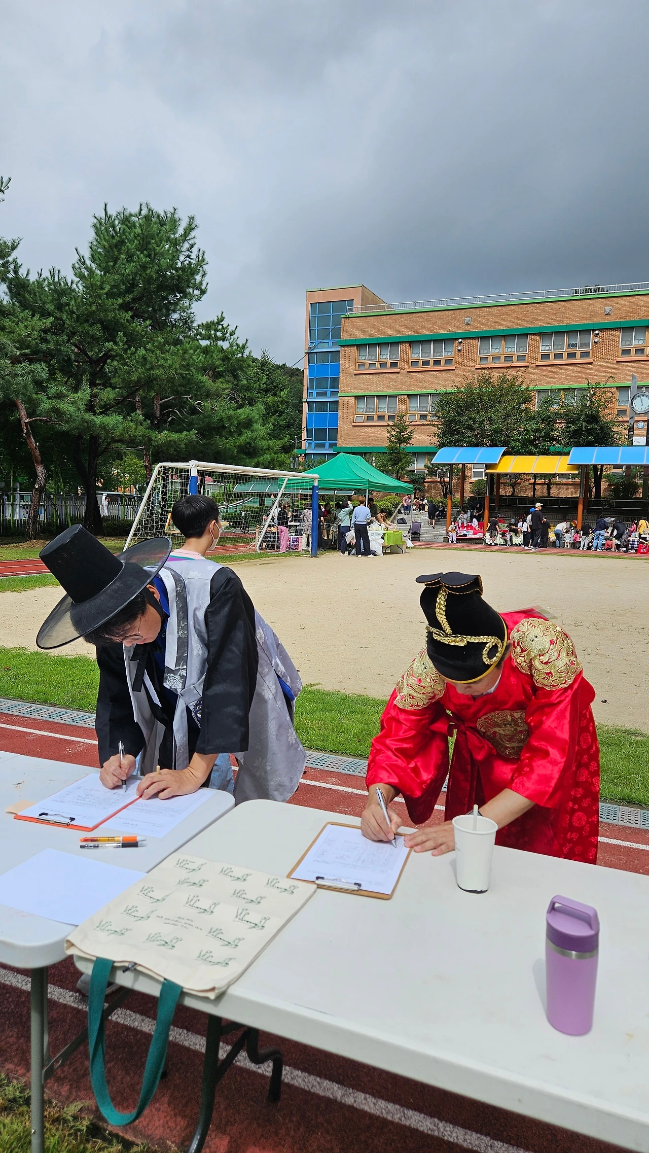 한 주 더 미룬 축제 당일 아침까지도 비가 내렸다. 결국 학교 운동장 대신 마을 도서관에서 소규모로 치르기로 했다. 그러나 행사 시작 직전, 하늘이 거짓말처럼 개었다. 비가 그친 하늘 사이로 투명한 햇살이 내려왔다. 그 빛이 운동장 사이로, 부스 사이로 흘러들었다. 유치원부터 초등학교까지 아이들의 웃음소리가 운동장을 가득 채웠다.