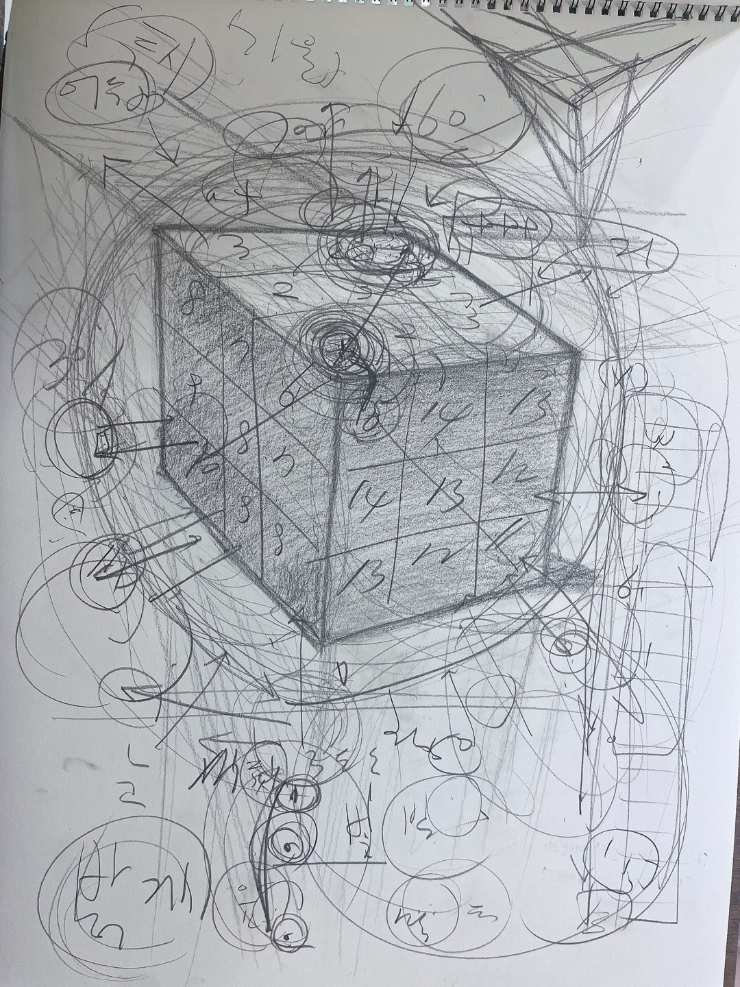 그렇기 때문에 높이에 따른 왜곡이 표현된 3점 투시가 적용된 정육면체처럼 내 눈에 보이지 않는 것처럼 느껴지는 것이다. (물론 투시선들이 엉성하고, 내가 투시를 100% 제대로 적용하지 못한 오류도 있겠지만)