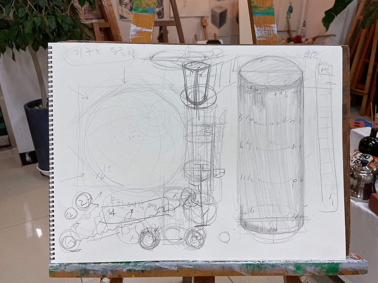 생각해보면, 이제는 기억도 잘 안나지만 초등학생 때 미술학원에 다녔을 때에도 이런 정육면체, 원, 원기둥 도형을 그렸던 것 같고, 성인이 되어 강남역에 있는 미술학원에 아주 잠시 다녔을 때에도 비슷한걸 그렸던 것 같다.
