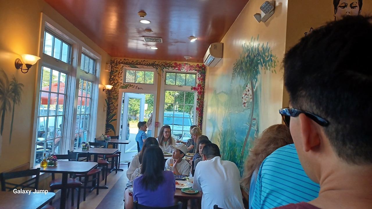 저녁은 야외에서 먹자고 말해서 돗자리와 음료, 음식을 챙겼다. 아들은 레스토랑에서 파스타와 샌드위치를 샀다. 샌드위치가 특이하다. 이태리 식당인데 샌드위치를 화덕에서 구워서 뜨거웠다.