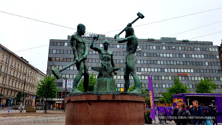 헬싱키 중심가에 위치한 스톡만Stockmann 백화점 앞에는 세 명의 대장장이가 함께 망치로 무언가를 두드리고 있는 조각상이 있다. 펠릭스 닐런드Felix Nylund가 1913년에 제작한 〈세 대장장이 동상Three Smiths Statue〉이다. (126쪽)