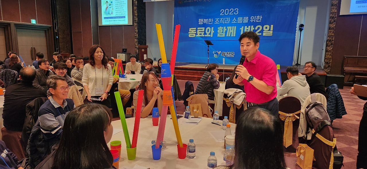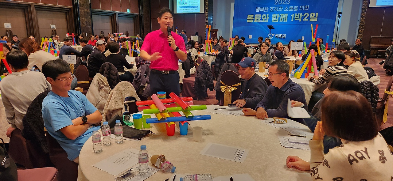 지난 11월 8일(수) 화천군청(군수 최문순)은 속초 마레몬스호텔에서 “행복한 조직과 소통을 위한 동료와 함께”라는 주제로 한광일 명강사를 초청하여 4회에 걸쳐 팀빌딩을 진행했다.