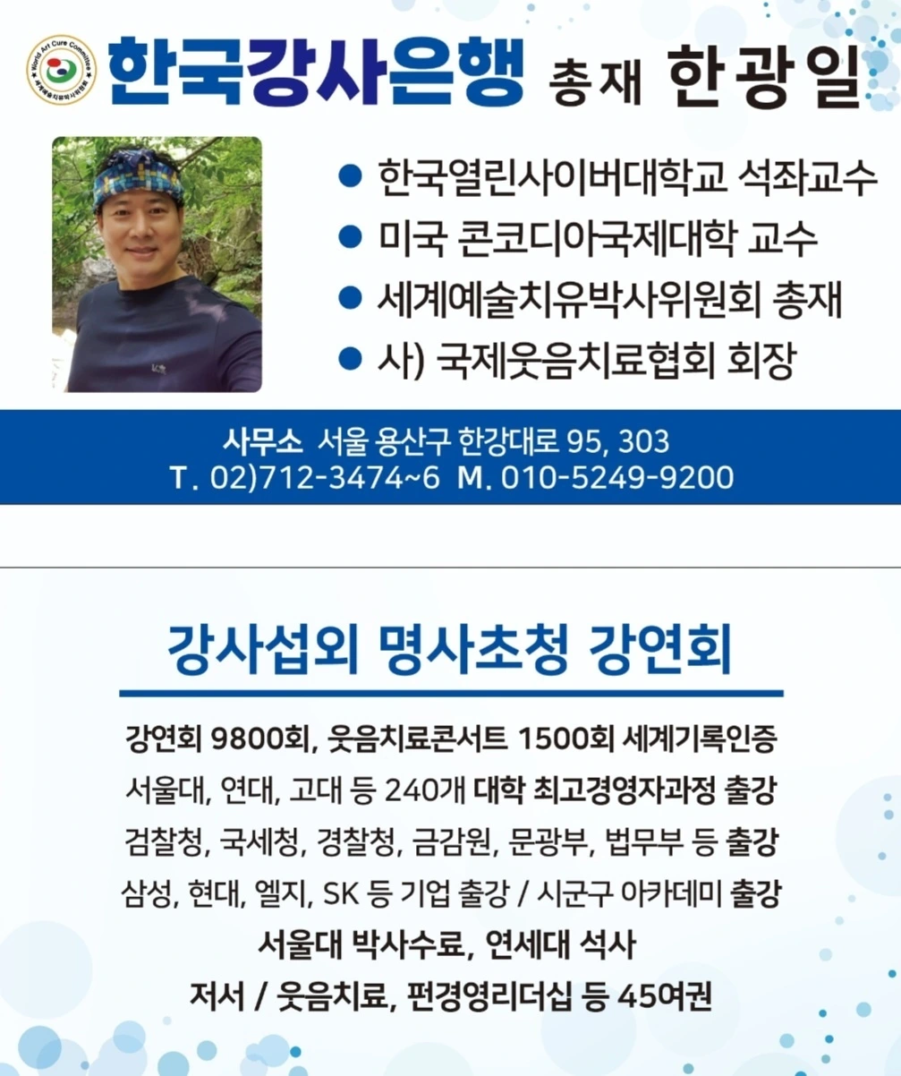 ESG강사,매일2만보실천,강사섭외,저서45권,특강 9,800회,강연섭외,강연,소통,명사특강,웃음강사,리더십강사,특강강사,웃음치료,웃음치료사,유명강사,명강사,명강의,인기강사,소통강사